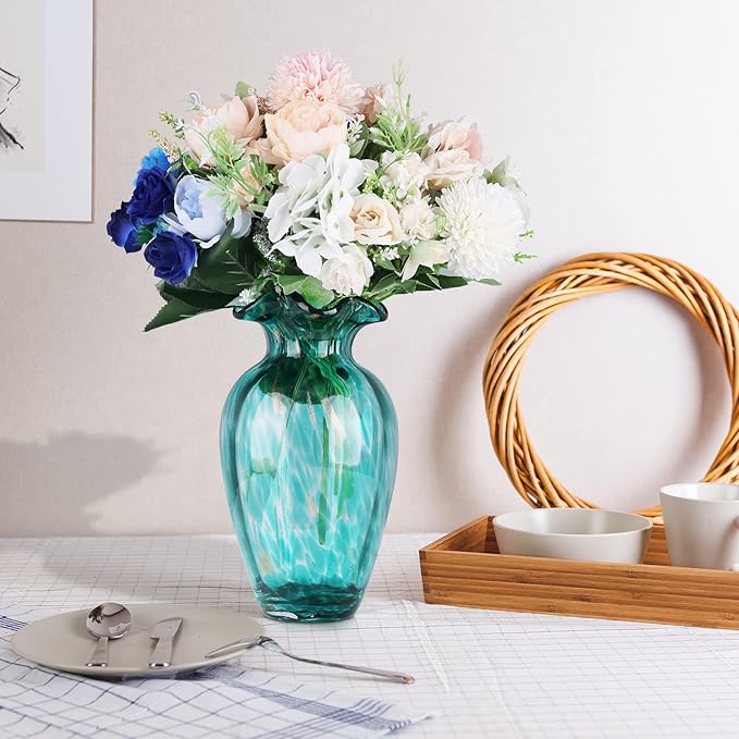 - PERFECT GIFT: Sea blue glass decorative vase is suitable for birthday, mother's day, thanksgiving, new year for female family, friends, elders. For Valentine's Day, Christmas or an anniversary gift, let them create their own collection of beautiful flowers.