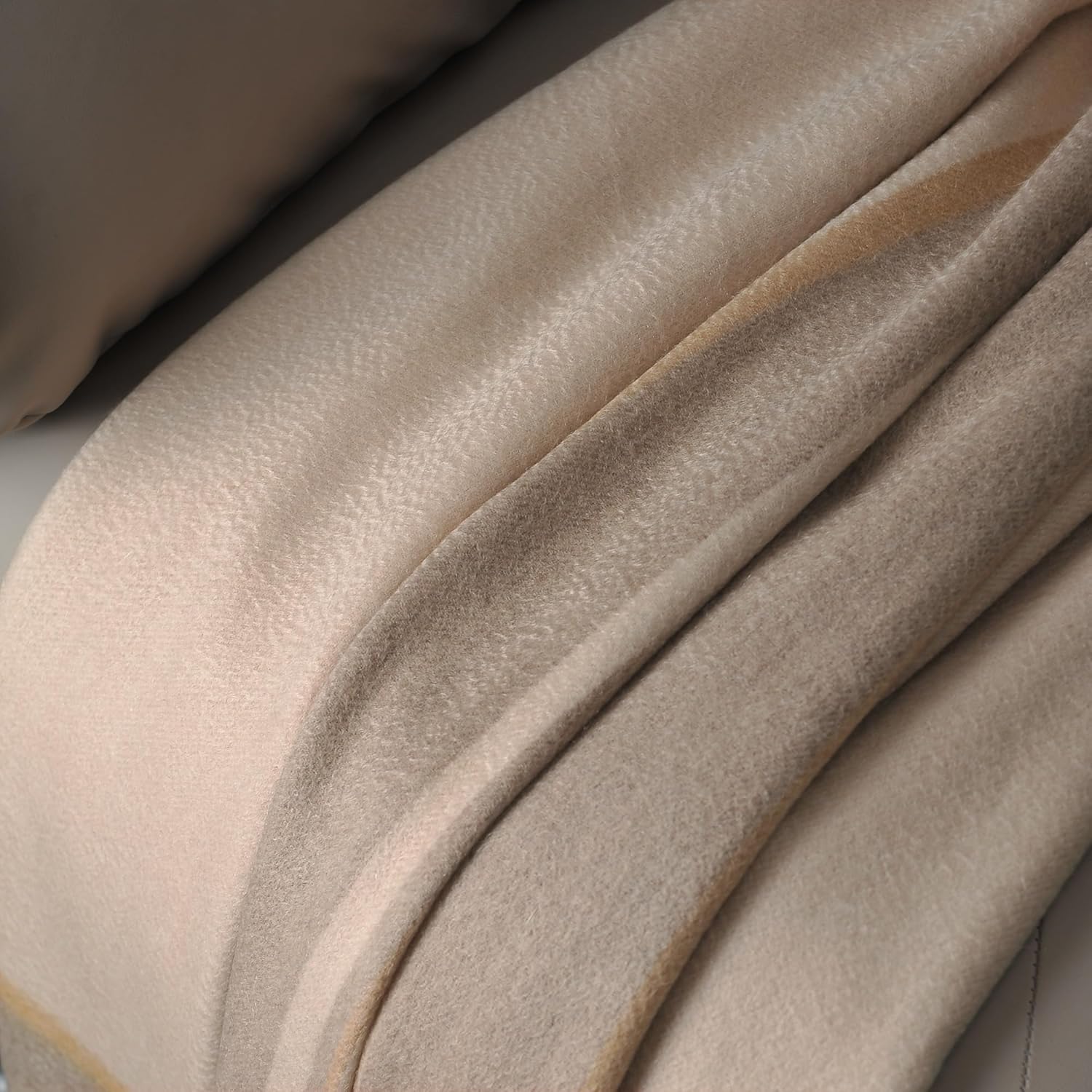 EP Mode 100% Pure Cashmere Throw Blanket for Sofa, Classic Design with Gift Box (Beige Border)