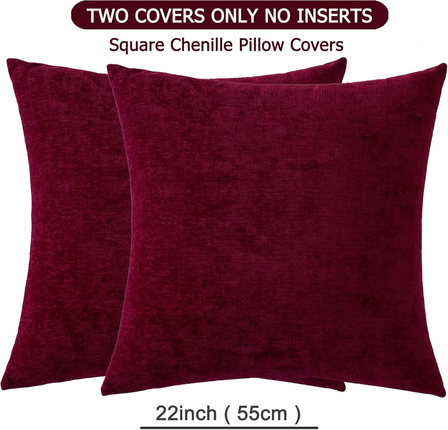 GAWAMAY Decorative Square Throw Pillow Covers 22"x22" Inch Set of 2, Super Soft Chenille Pillows Farmhouse Fall Pillowcase for Living Room Bedroom Sofa Couch Cushion Cover Burgundy Red 55x55cm