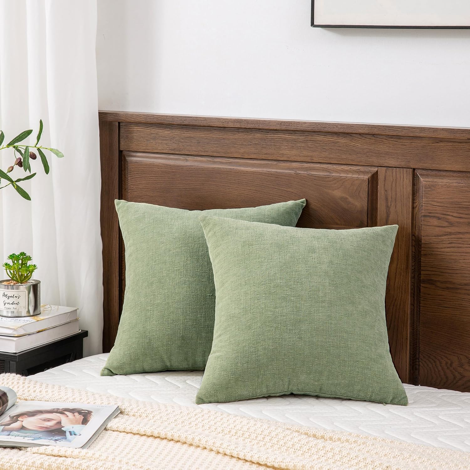 GAWAMAY Decorative Square Throw Pillow Covers 22"x22" Inch Set of 2, Super Soft Chenille Pillows Farmhouse Fall Pillowcase for Living Room Bedroom Sofa Couch Cushion Cover Sage Green 55x55cm