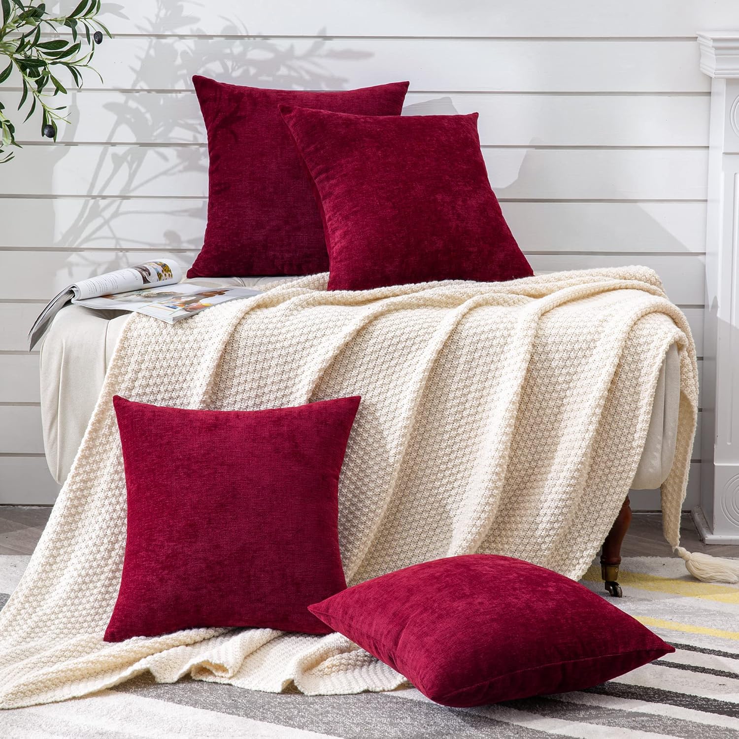 GAWAMAY Decorative Square Throw Pillow Covers 18"x18" Inch Set of 4, Super Soft Chenille Pillows Cover Fall Pillowcase for Living Room Bedroom Sofa Couch Cushion Cover Burgundy Red 45x45cm