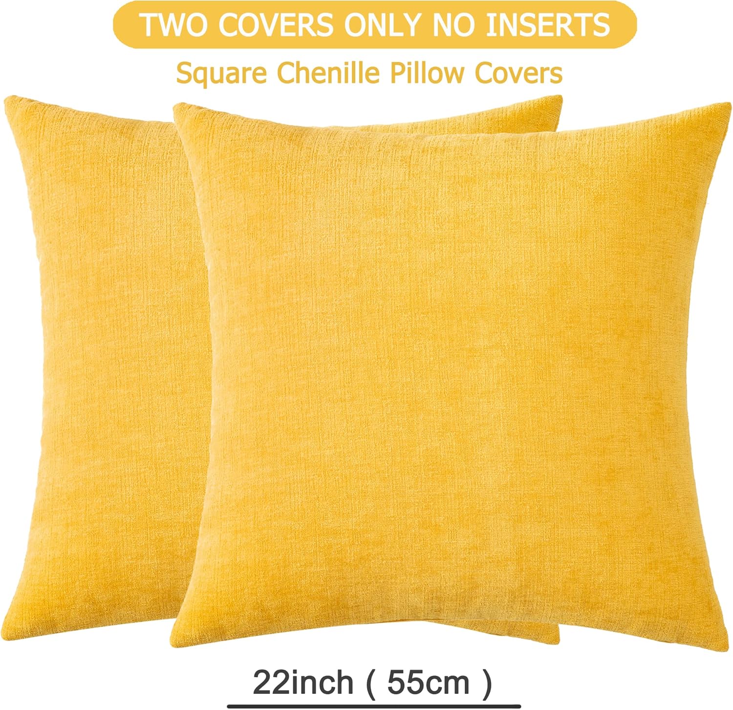 GAWAMAY Decorative Square Throw Pillow Covers 22"x22" Inch Set of 2, Super Soft Chenille Pillows Farmhouse Fall Pillowcase for Living Room Bedroom Sofa Couch Cushion Cover Mustard Yellow 55x55cm