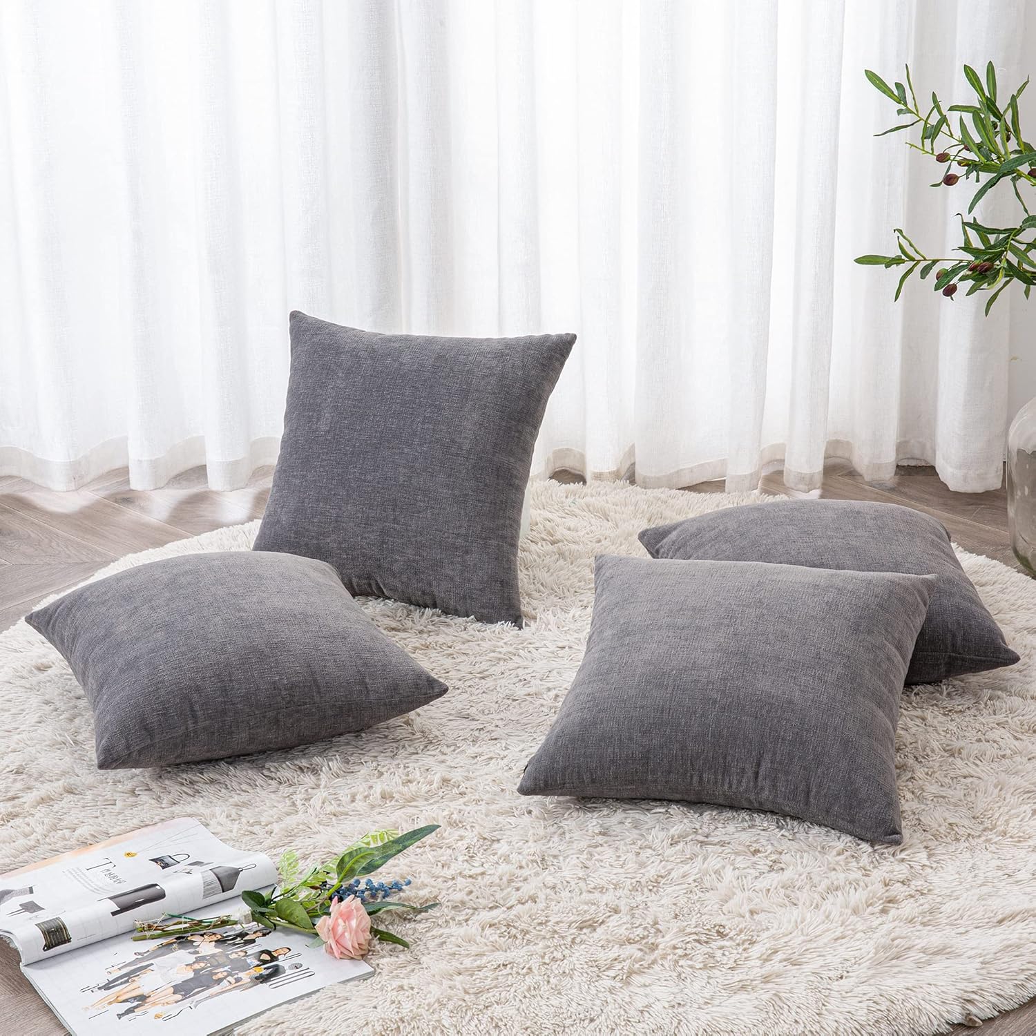 GAWAMAY Decorative Square Throw Pillow Covers 18"x18" Inch Set of 4, Super Soft Chenille Pillows Cover Fall Pillowcase for Living Room Bedroom Sofa Couch Cushion Cover Grey 45x45cm (No Insert)