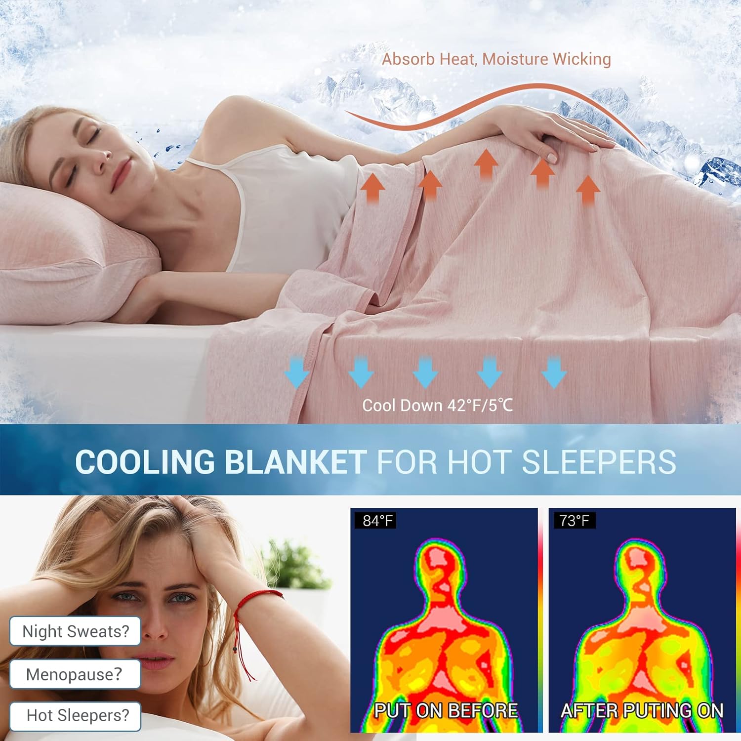 - 【Enhanced Coolness Feeling All Night】Struggling to sleep in the heat and humidity? Say goodbye to hot and restless nights with Marchpower's cooling blanket! this cooling blanket is crafted with Japanese Arc-Chill technology (Q-MAX>0.5, while general blankets< 0.2). The cooling fiber expertly absorbs body heat, leaving you feeling cool all night long, reducing skin temperature by 35.6 to 42°F, this cool blanket is a perfect choice for those who prefer not to run their air conditioning all night!