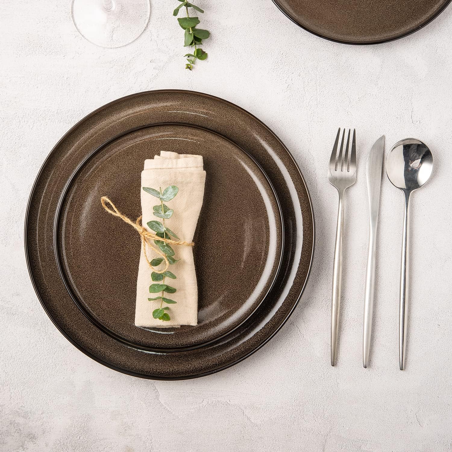 - 【LEAD FREE EAT SAFTY】Our plates is made of druable material and features an all-natural glaze that is lead-free, cadmium-free. The set is fired at a high temperature of 2340℉ for 17 hours to ensure its durability and safety. With this dinnerware set, you'll never have to worry about any health problems.