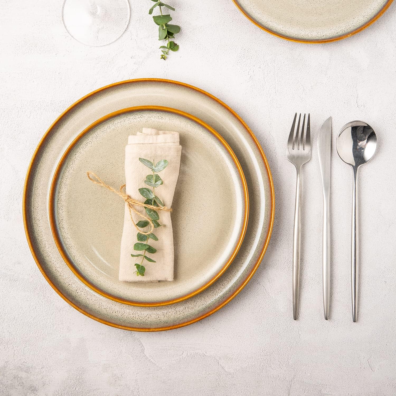 - 【LEAD FREE EAT SAFTY】Our plates is made of druable material and features an all-natural glaze that is lead-free, cadmium-free. The set is fired at a high temperature of 2340℉ for 17 hours to ensure its durability and safety. With this dinnerware set, you'll never have to worry about any health problems.