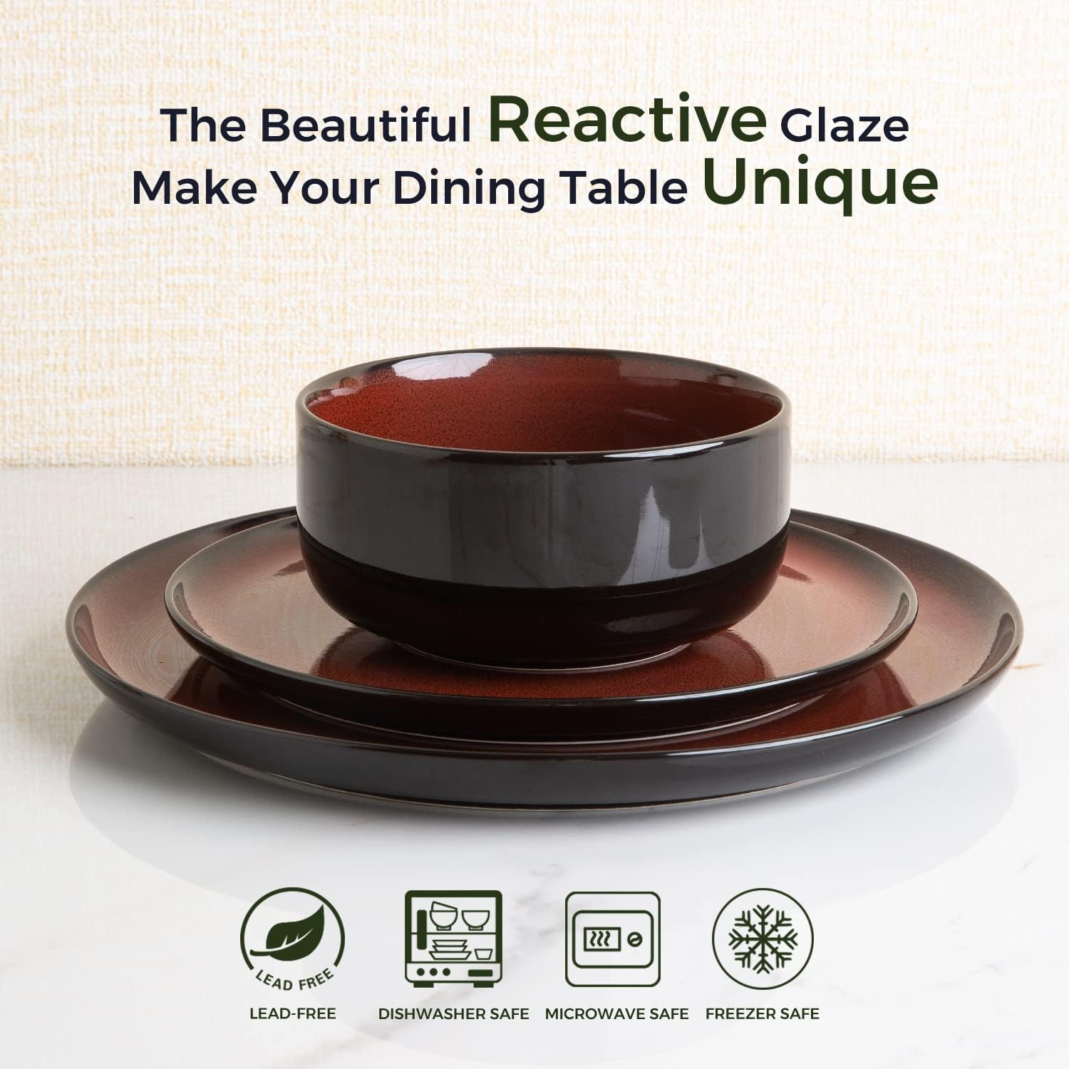 - 【LEAD FREE EAT SAFTY】Our plates is made of druable material and features an all-natural glaze that is lead-free, cadmium-free. The set is fired at a high temperature of 2340℉ for 17 hours to ensure its durability and safety. With this dinnerware set, you'll never have to worry about any health problems.