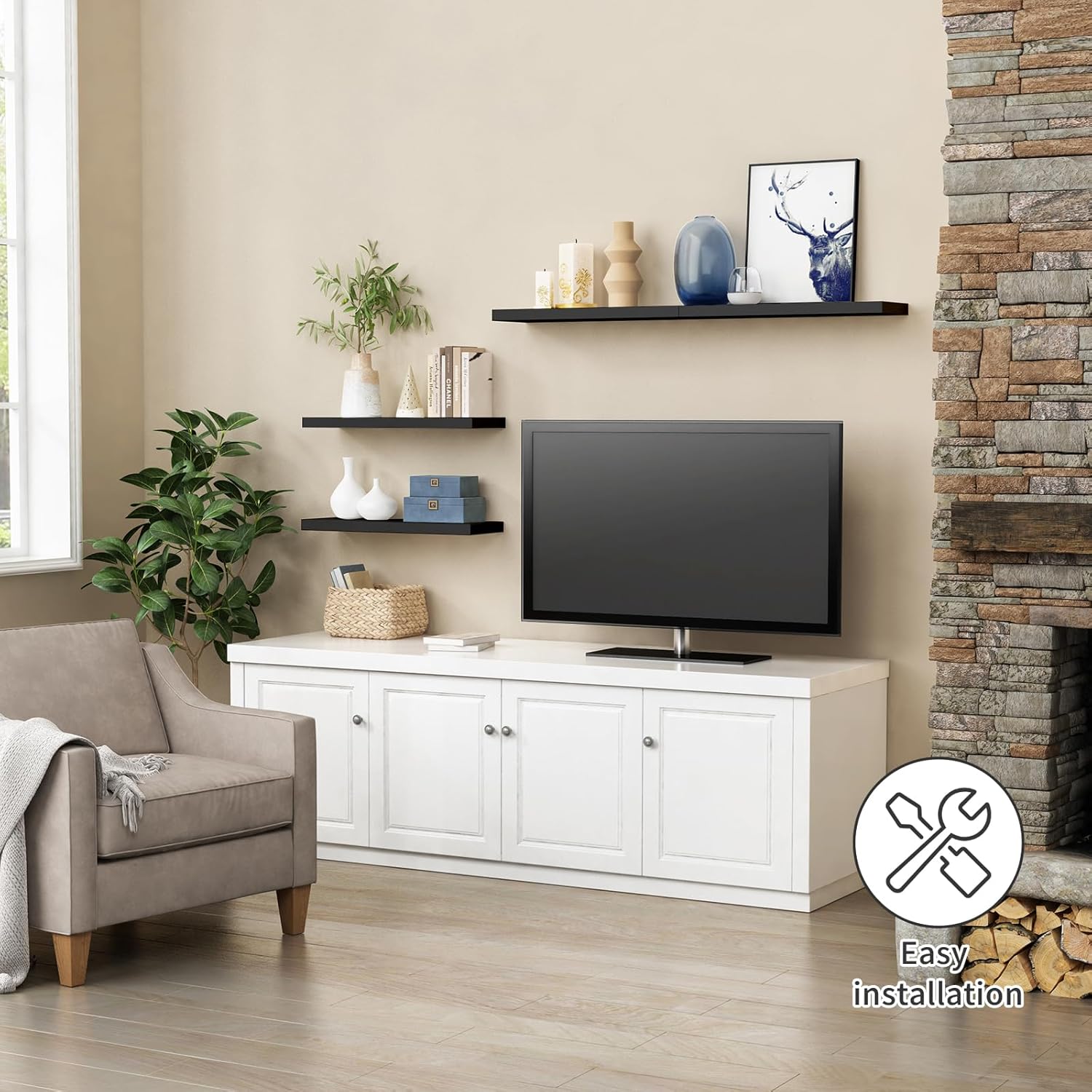 Forbena 24 Inch Long Black Floating Shelves for Wall, Large Wall Shelves for Living Room Decor Bedroom Books, Invisible Wall Mounted Shelves for Bathroom Office Closet TV Shoes - Set of 3