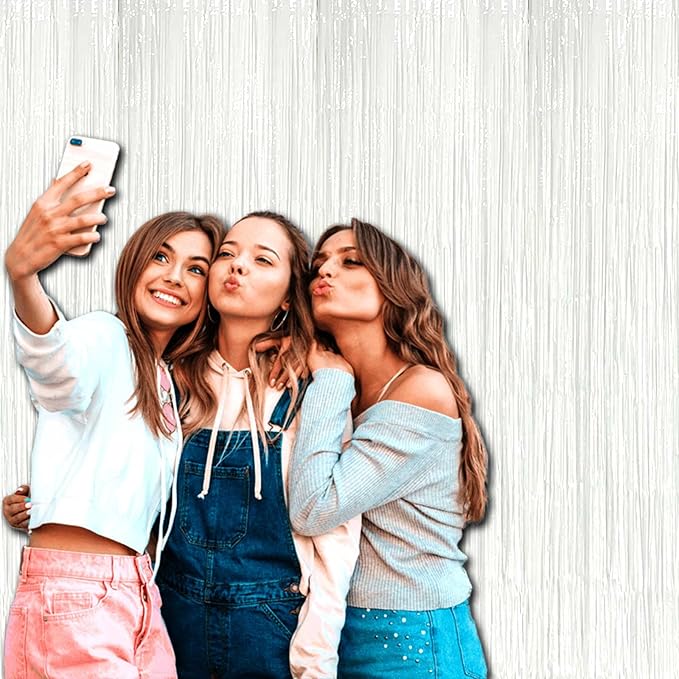 4 Pack White Foil Fringe Curtain Backdrop, 3.3Ft x 9.8Ft Metallic Tinsel Streamers Curtains for Photo Booth, Wedding, Thanksgiving, Birthday, Christmas Party Decoration, One Size