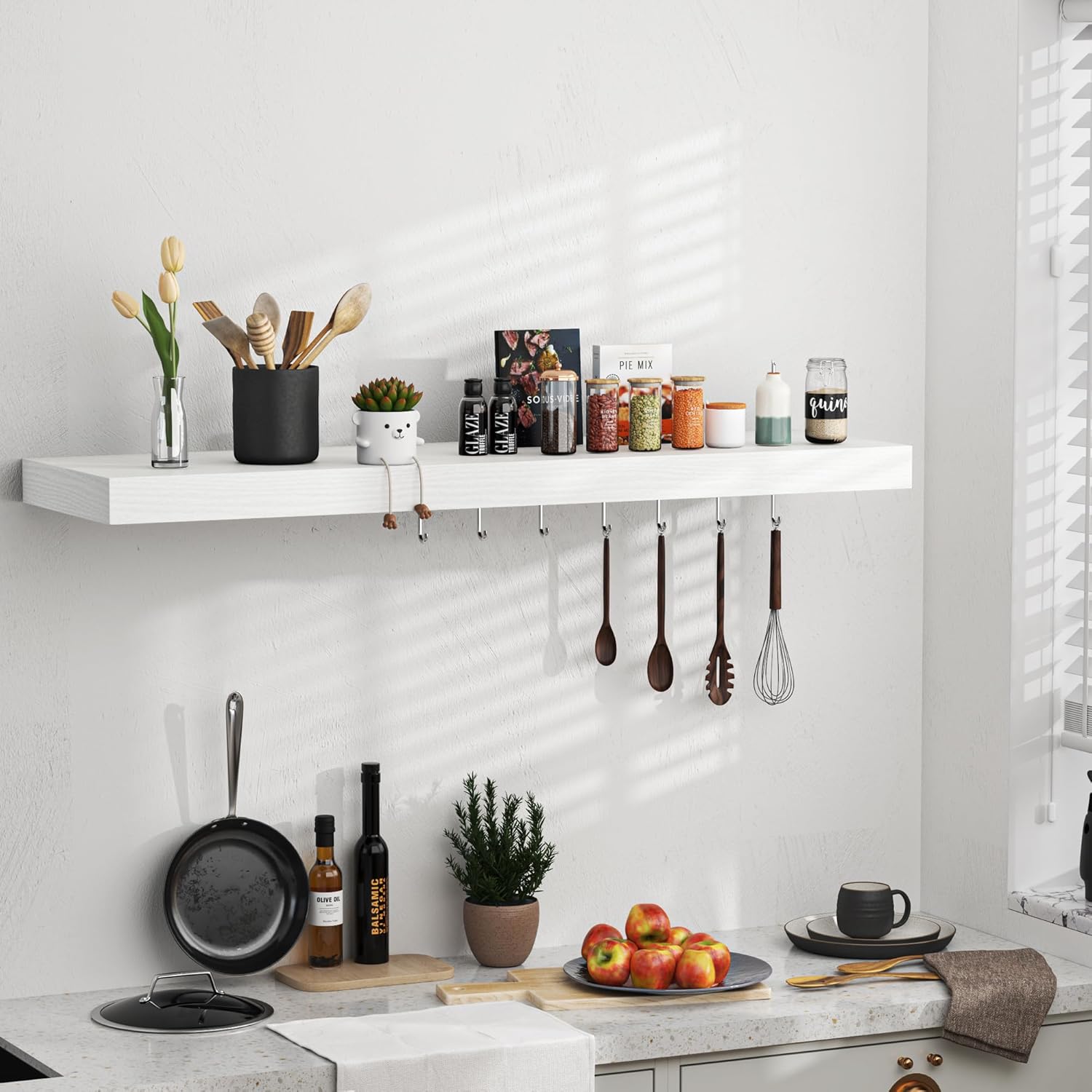- Multi-scene & Functional - Mount in the bathroom perfect storage of beauty, hair products or aromatherapy. Mount in the bedroom to hold your books, cosmetics and personal privacy things. Mount in the kitchen to hold spices and jars. Or as a display shelf mount in the living room to show your picture frames, trophies or favorite collection. The rustic shelves can help make full use of the empty wall, which is much more space-saving and makes your room look larger and tidier.