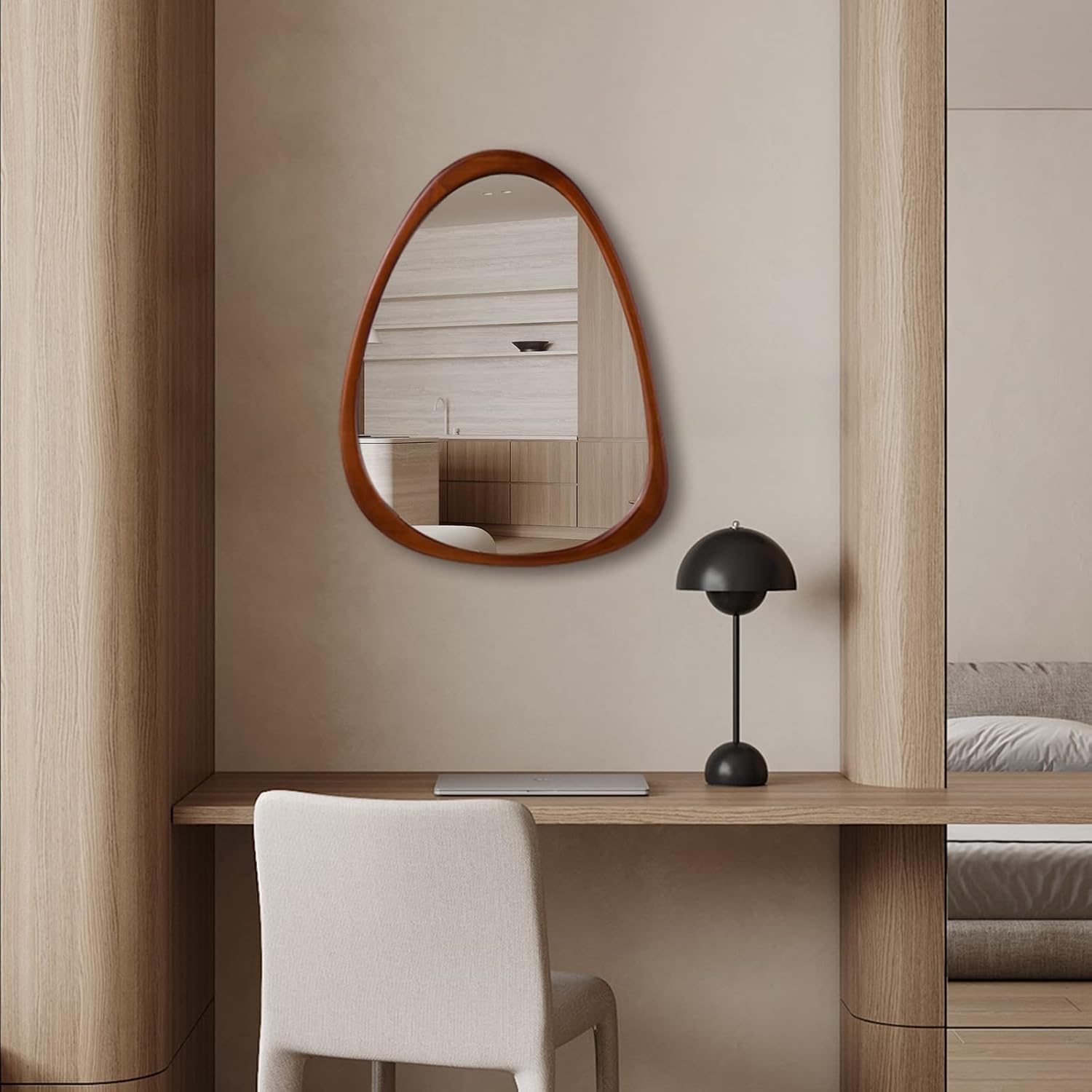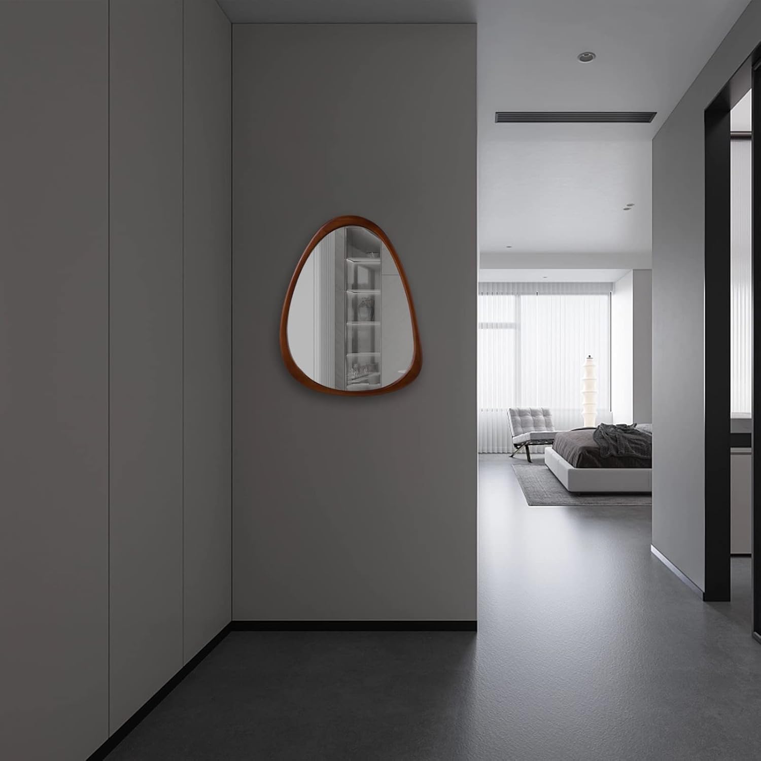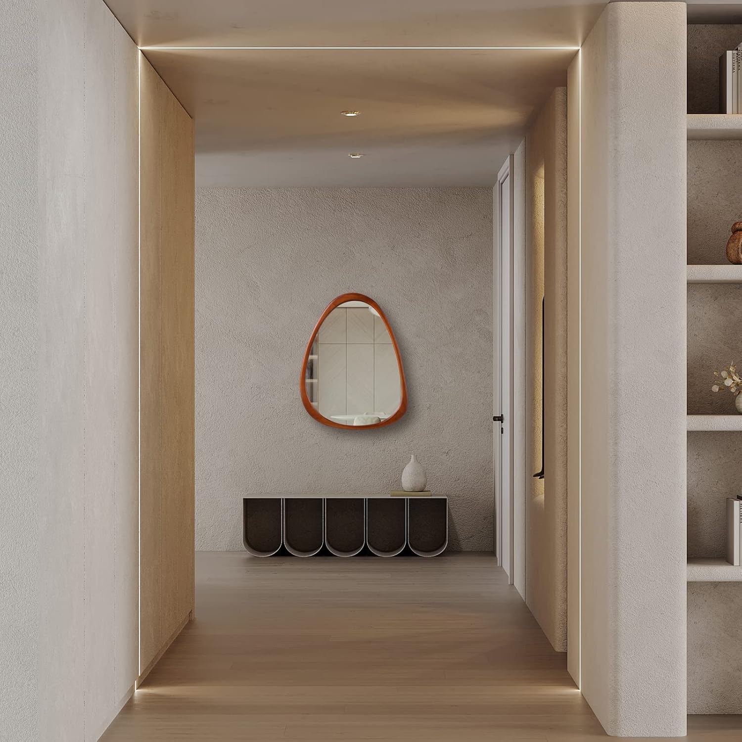 COOL2DAY Irregular Asymmetrical Wood Wall Frame Mirror, Abstract Decorative Odd Shaped Mirror for Living Room, Bedroom, Entryway, Bathroom - 28"x 22"