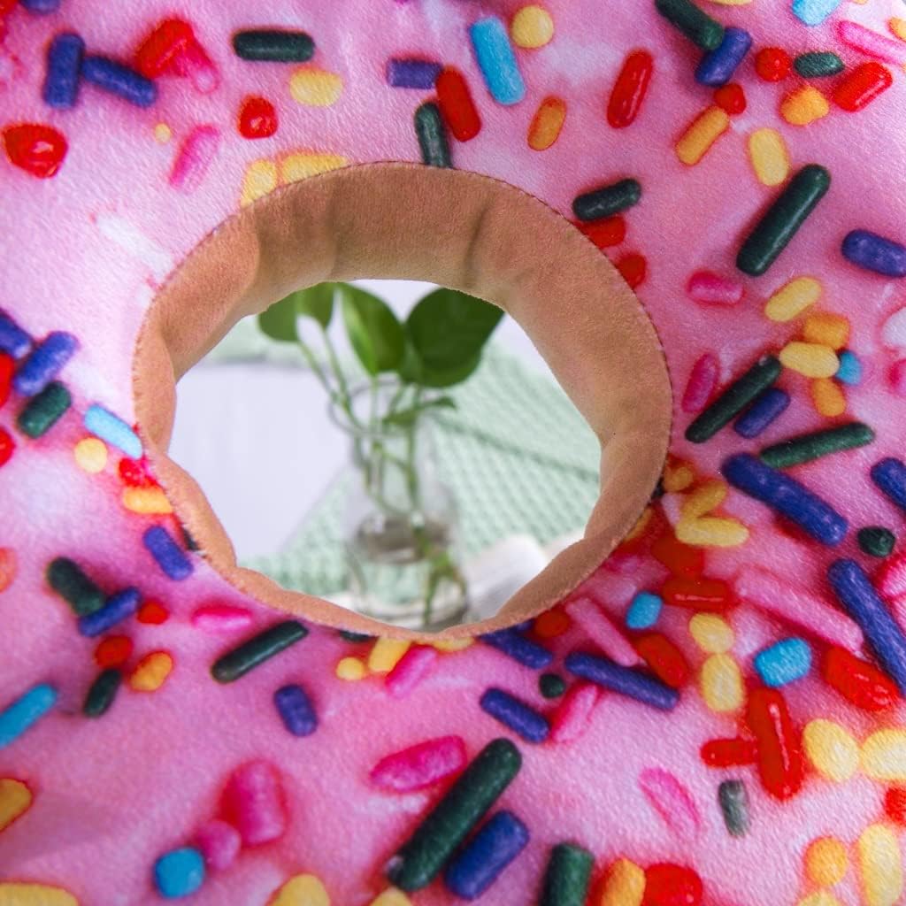 - SIZE: The measurement of this decorative funny donut shaped food throw pillow is approximately 14x14x2.75inches. please note that this throw pillow have no invisible zipper, the solid stitch protect the inside sponge well and not tear easily
