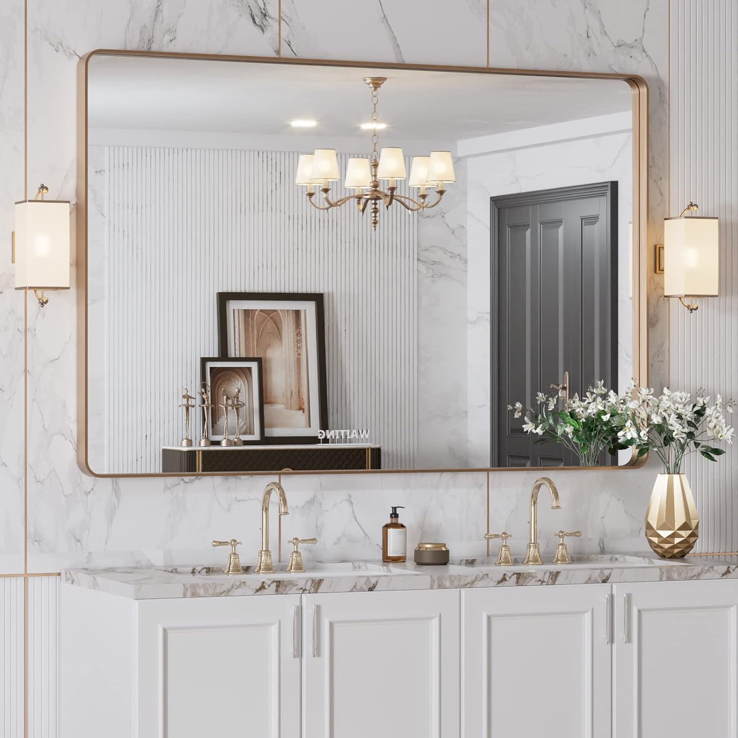 - 【Sturdy Mirror with Premium Materials】: LOAAO brush gold bathroom mirror with 4MM tempered glass features shatter-proof, burst-proof; Aluminum alloy frame design which features anti-rust; Ideal for using in bathroom. Solid and sturdy, durable for use