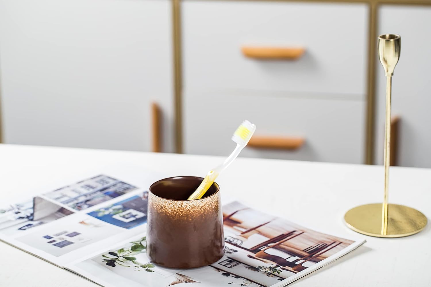 handmade Ceramic whiskey gllass Mugs,10oz Porcelain Mug for Men/Women,Tea Cup for Office and Home, Microwave and Dishwasher safe, Gift for Parents, Family and Friends(Brown)