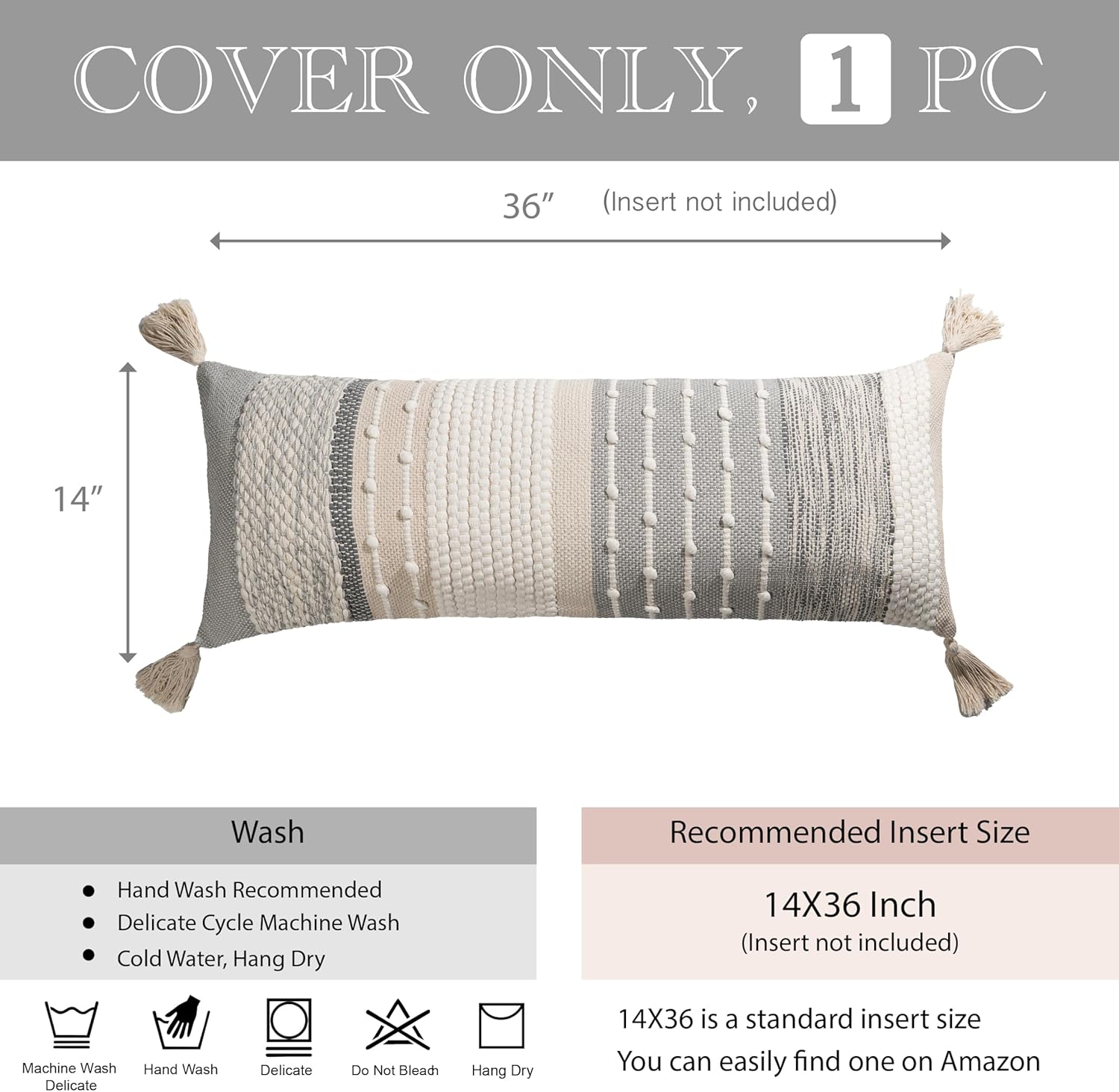 - Cover Only: Boho Decorative Lumbar Throw Pillow Cover 14x36 Inch for bed