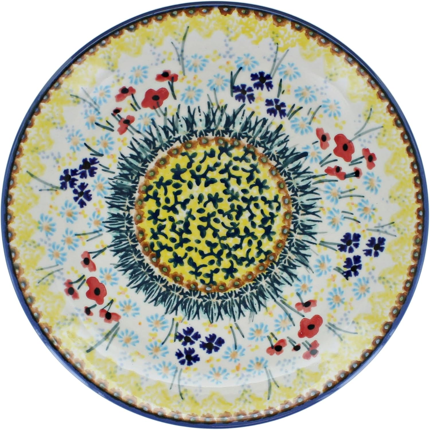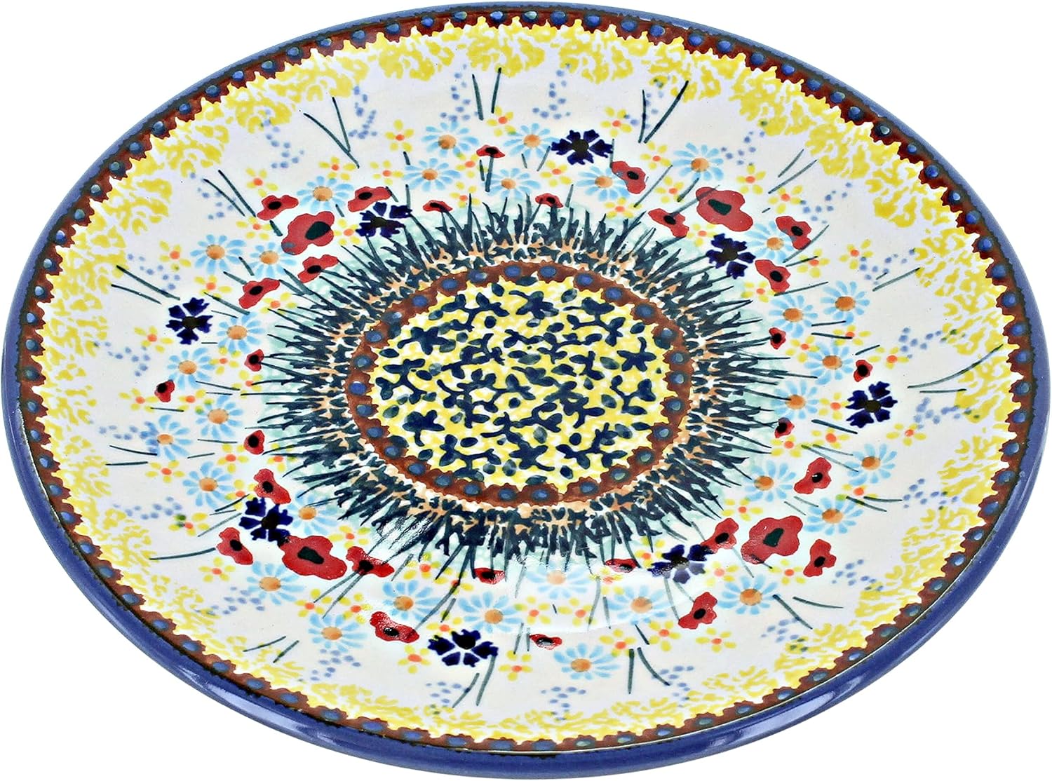 Blue Rose Polish Pottery - Yellow Prairie Garden Dessert Plate - 7" Diameter - Beautiful Plate for Cake, Appetizers, or Snacks