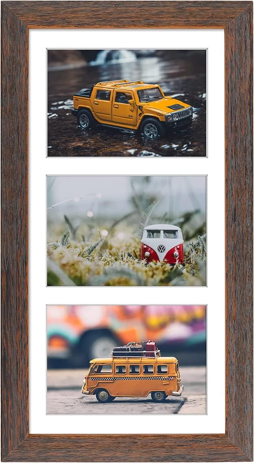 - Wooden Frame and High-Definition Temperd Glass. Color: Distressed Brown. Size: 7x14 Frame, 3 4x6 Collage Frame