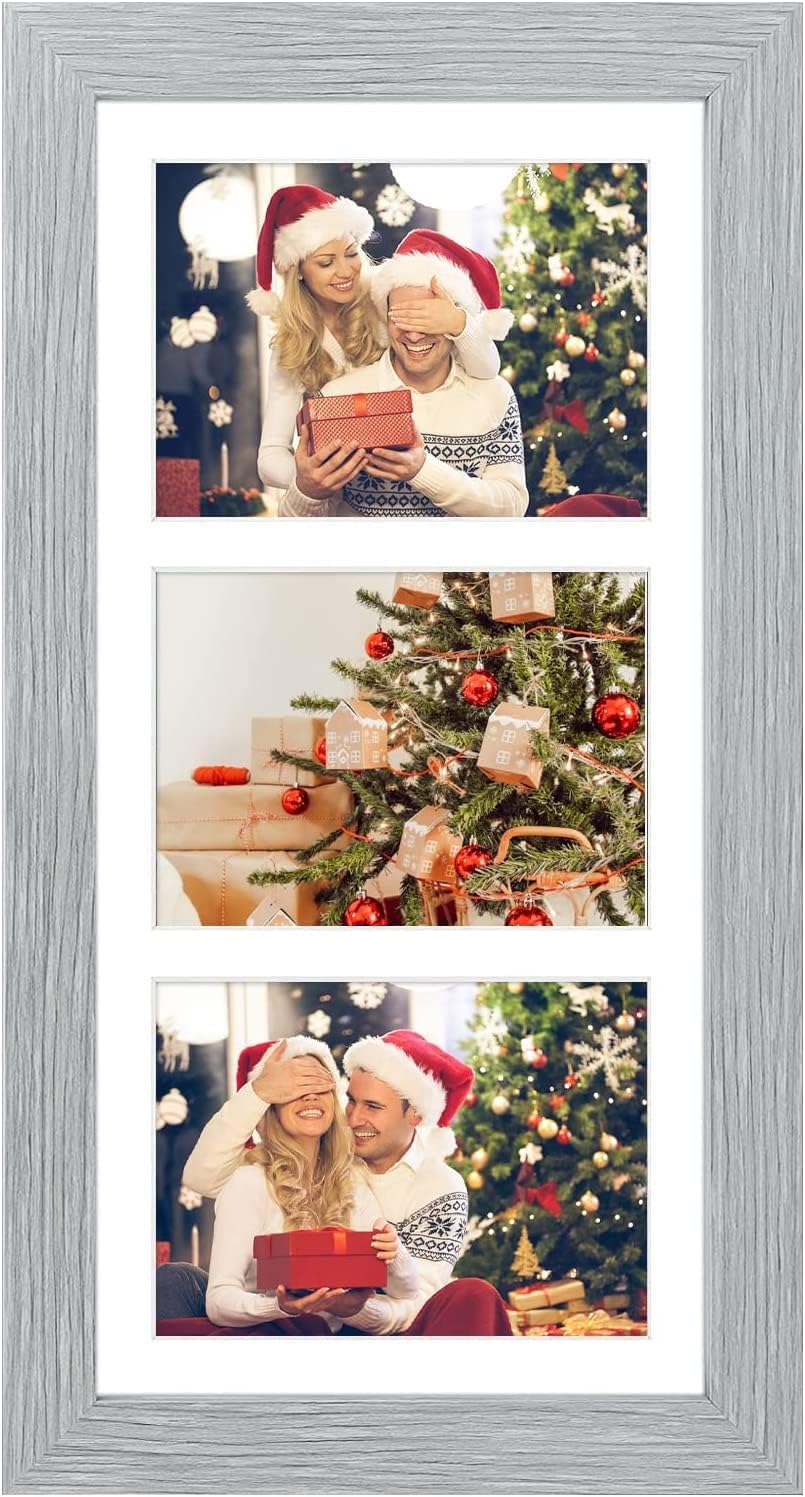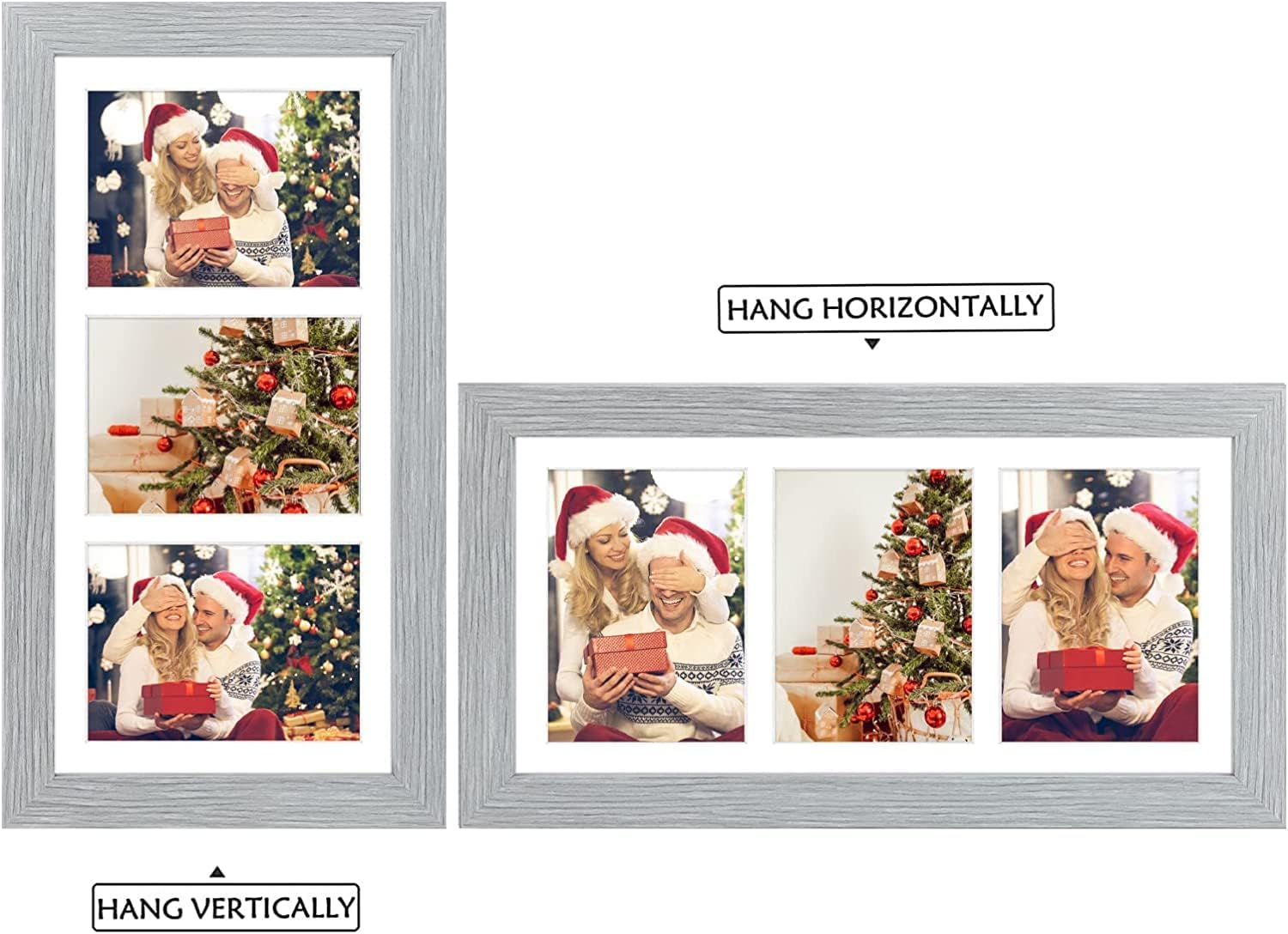 Golden State Art, Set of 10, 7x14 Grey Photo Wood Collage Frame with Mat Displays (3) 4"x6" Pictures