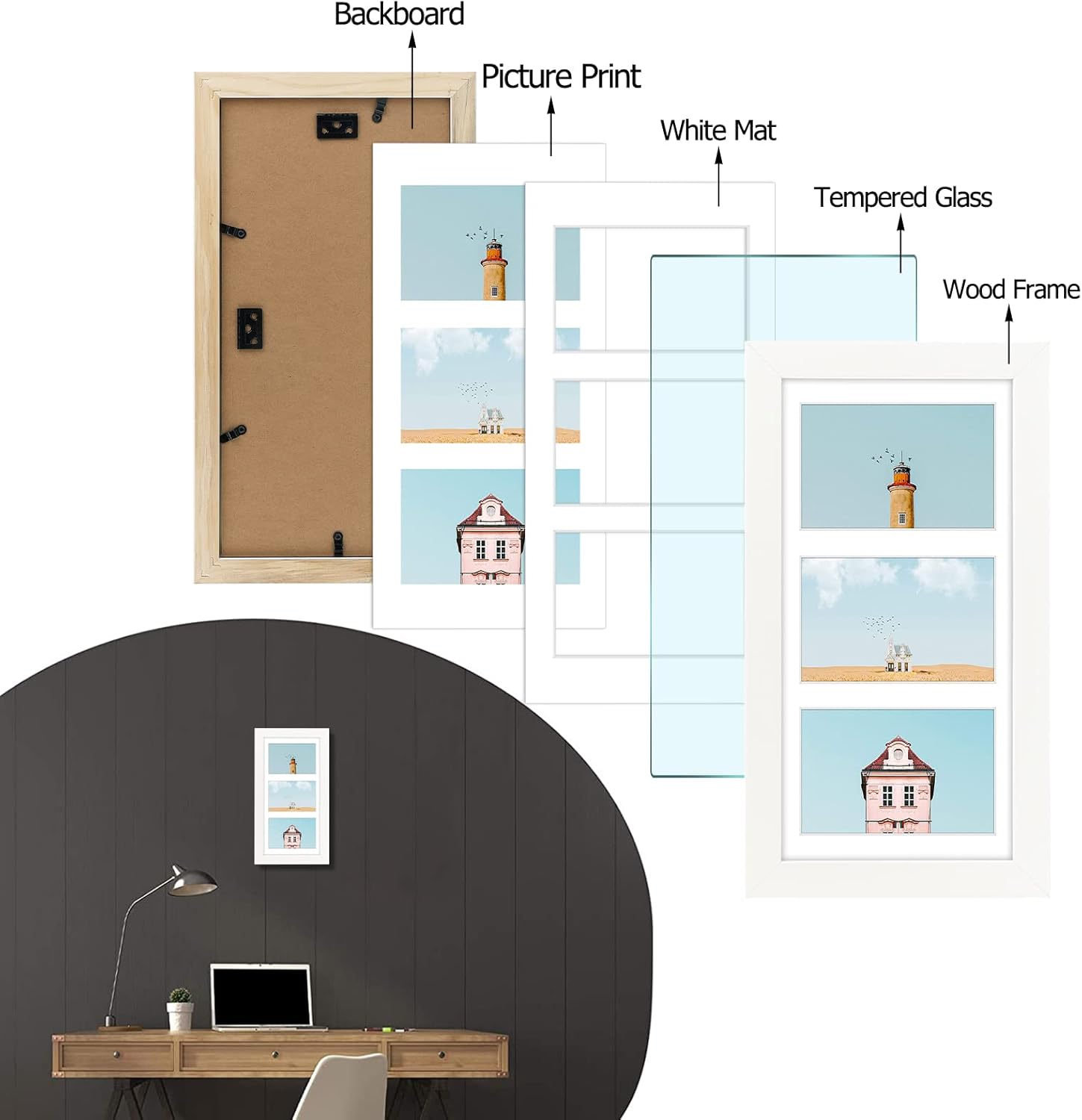 - Wooden Frame and High-Definition Temperd Glass. Color: White. Size: 7x14 Frame, 3 4x6 Collage Frame