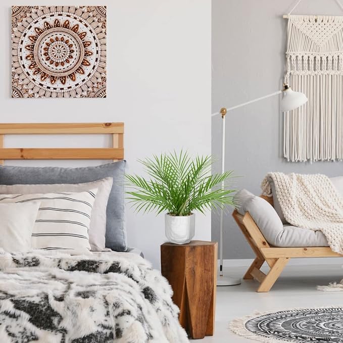 Hollyone Large Artificial Potted Plants Fake Palm Plants 16" Faux Green Plant Plastic Tropical Palm Tree in Marble Ceramic Pots Bohemian for Home Room Office House Indoor Decoration