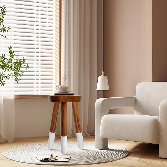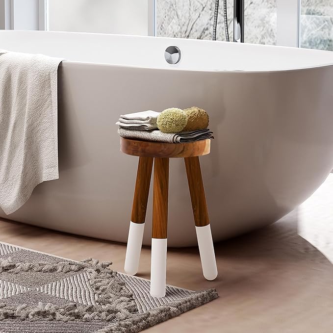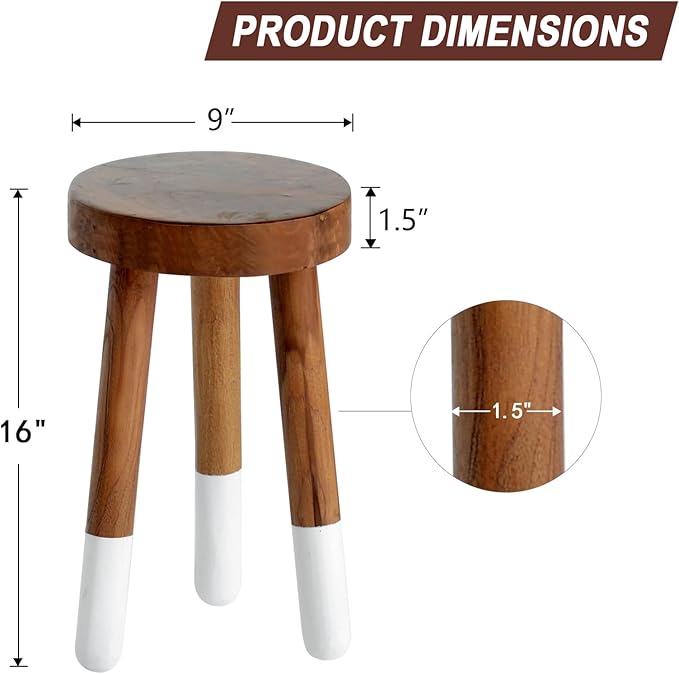 - ✨ A TIMELESS, CLASSIC, WOODEN STOOL: Handcrafted from Natural Teak Wood, sealed to perfection, and legs dipped in white to add a fun dimension. Perch your houseplants on them, the kid's stack of books, or your hand towels in the bathroom, and let it be the finishing touch to any room in your humble abode.