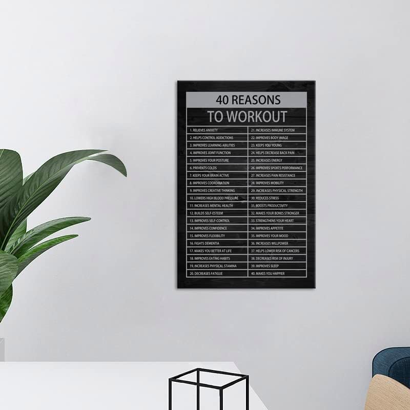 Inspirational Canvas Wall Art Motivational Wall Art for Office Decor Positive Quote Posters 40 Reasons to Workout Picture Prints Modern Home Wall Decor Framed Ready to Hang[12"W X 18"H]