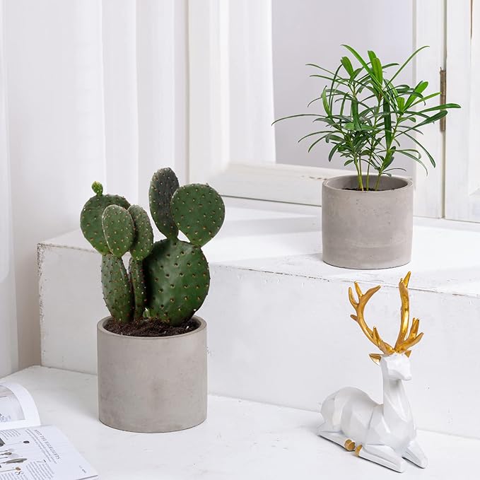 - 【Extensive Uses】 This cement flower pot is available in five different sizes, 3.5 in,4 in ,5 in, 6 in and 9 in, making it easy to choose the right home for your plant. Design for decorate windowsill, tabletop, shelf, bedroom, kitchen, garden, office and outdoor patio
