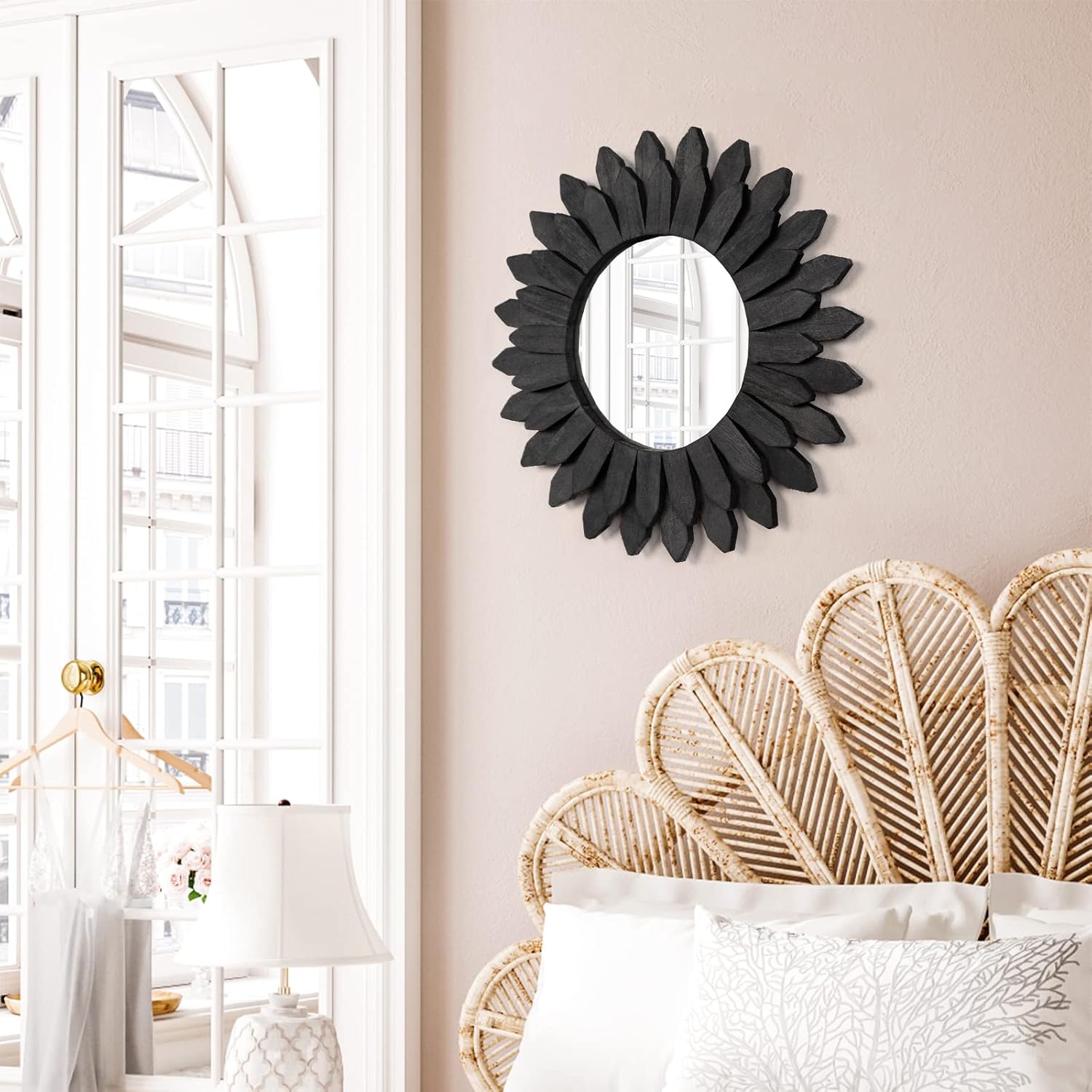 - Boho Wall Decor Mirror: The mirror wall decor consist of wooden sunburst frame and round mirror to make a bohemian style mirror, can combine with other decoration style, is perfect aesthetic wall decor for bedroom, living room, fireplace, hallway, lounge, entryway