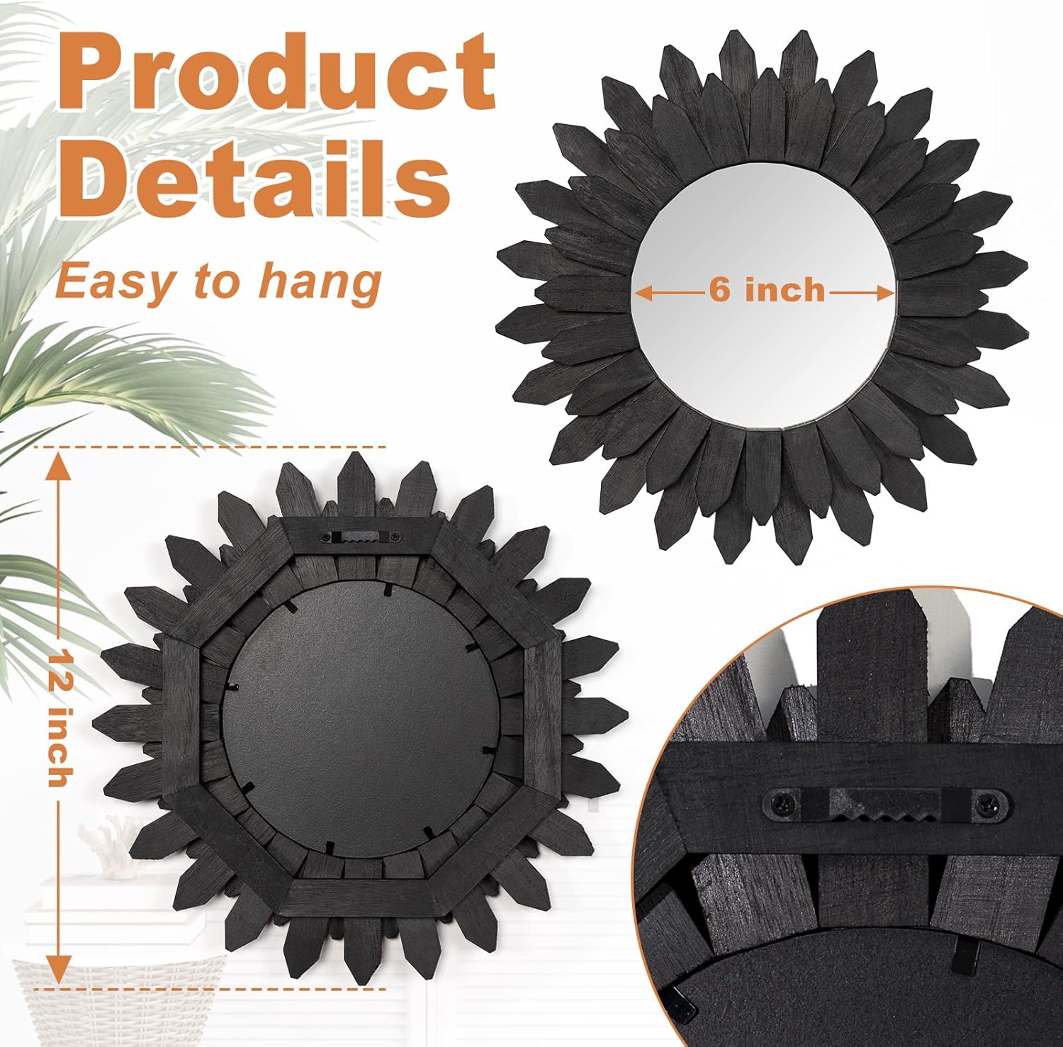 - Small Wall Mirror Decor: Total diameter is 12 inch with wood frame and 6 inch diameter for the mirror alone; No need assembly, quite easy to hang on the wall; Comes with anchor and screw