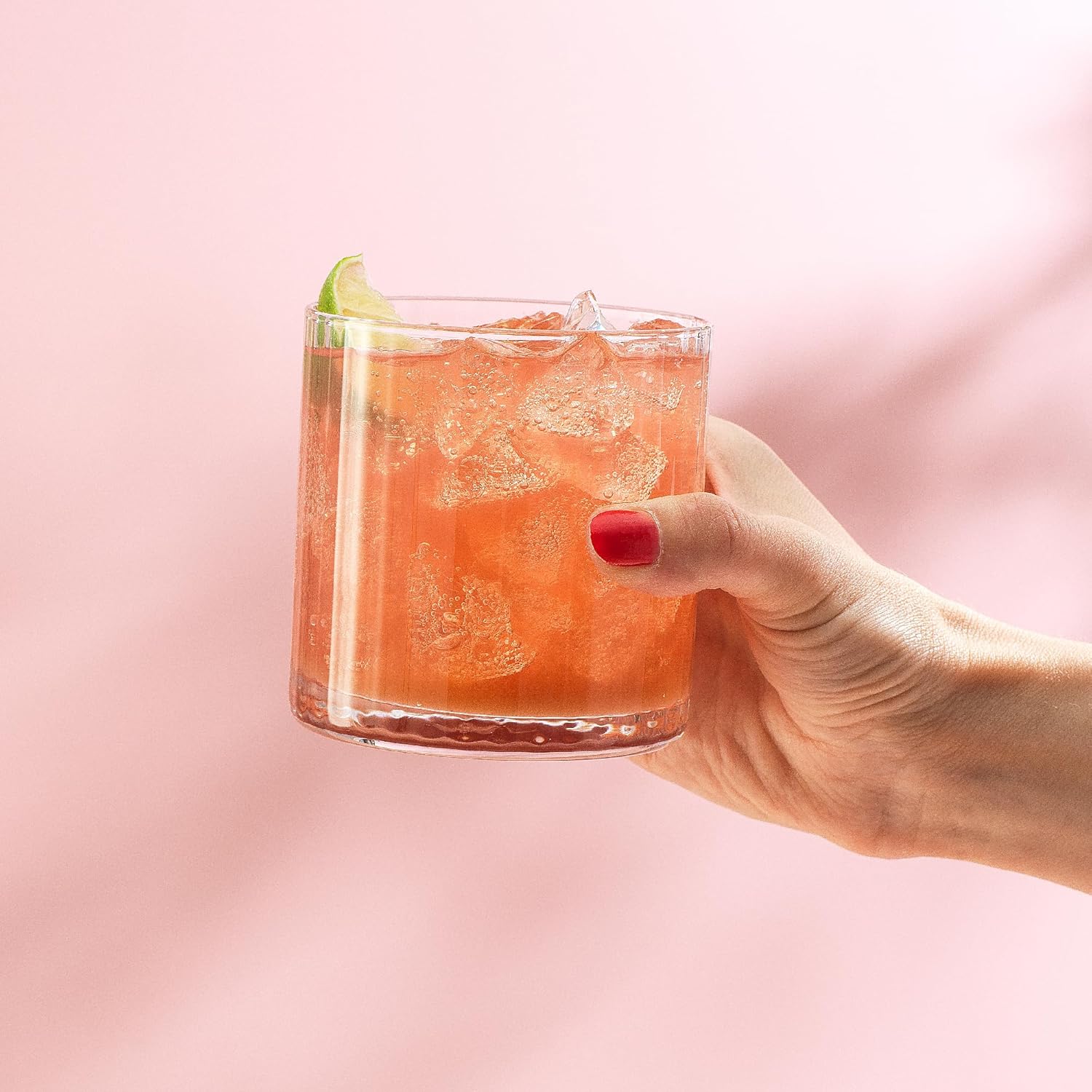 - DURABLE RIPPLE GLASSWARE: Your mixed drink glasses are made from durable soda lime glass; Thick, but also light and delicate in your hand. While they look like vintage glass ware, they’re completely free of the bad stuff. These clear glass cups are extra sturdy, dishwasher safe barware for easy clean up!