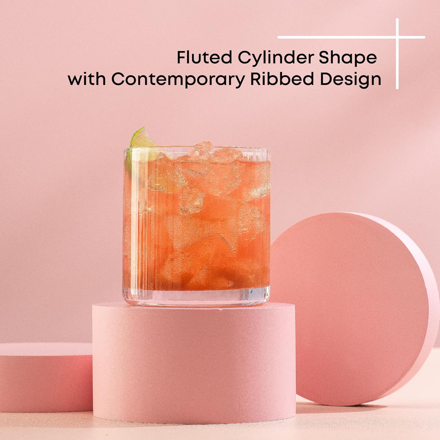 - FLUTED GLASSES FOR ART DECO DRINKS: This set of 2 ribbed glasses features a vintage fluted glassware texture that’s satisfying to hold, while bringing out beauty in drinks. From rocks glass to gin and tonic glasses, short cocktails or just water, these cute glass cups are rippled for joy!