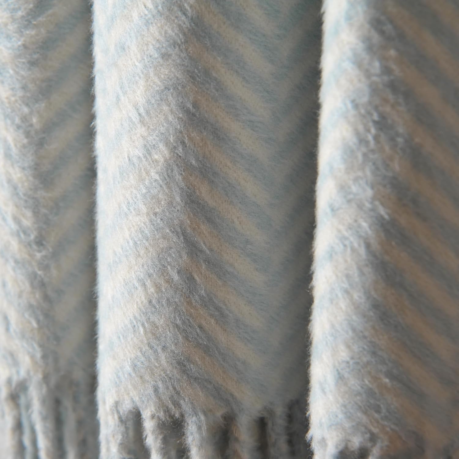 CUDDLE DREAMS Silk Throw Blanket with Hand-Knotted Fringe, Natural, Soft & Breathable (Herringbone Blue)
