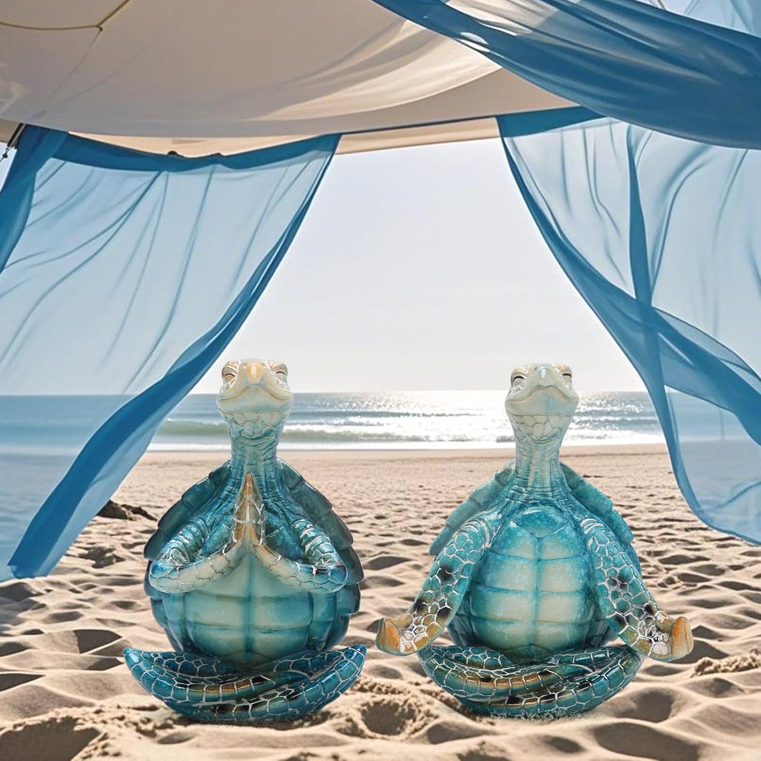 Hodao 2PCS Sea Turtle Meditation Yoga Decor Garden Figurines Sea Turtle Meditating Coastal Beach Decorations, Zen Yoga Resin Statues for Home Office Decor Home Calming Gifts for Mom, Nature Lovers