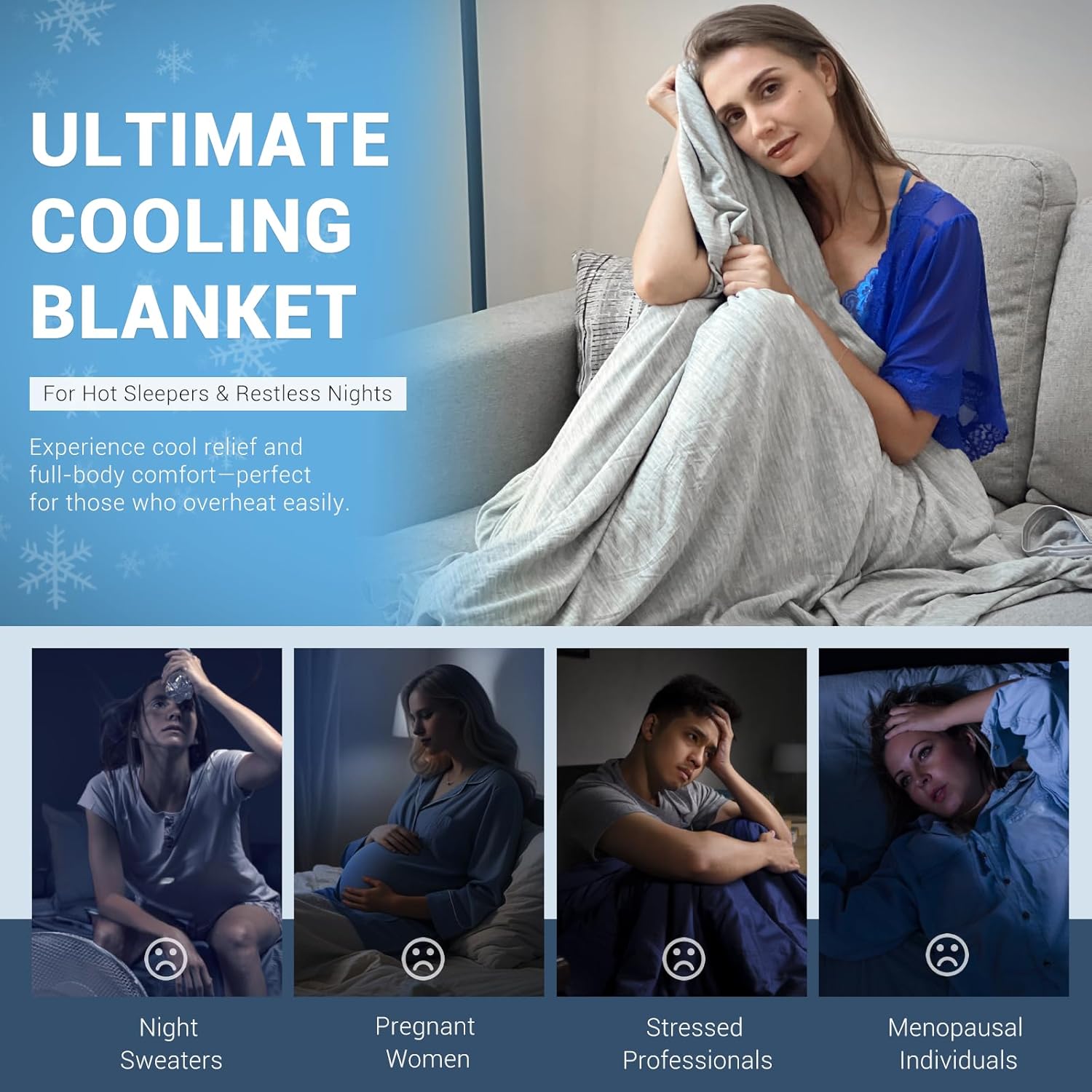 - VERSATILE USAGE SCENARIOS: The cooling blanket is lightweight and portable, making it easy to carry for use in your bedroom, living room, sofa, camping, travel, car, or airplane—take our cooling blanket wherever you go. Perfect for both indoor and outdoor use, and any place where you need a cozy blanket to stay warm or cool. This is the ultimate multi-purpose cool/warm blanket for all uses and occasions.