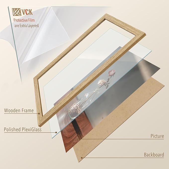 - Perfect View: Serving your pictures a perfect view, VCK introduces polished HD plexiglass.shatterproof, anti-UV (99.9%), anti-glare, and safe to use for kids.