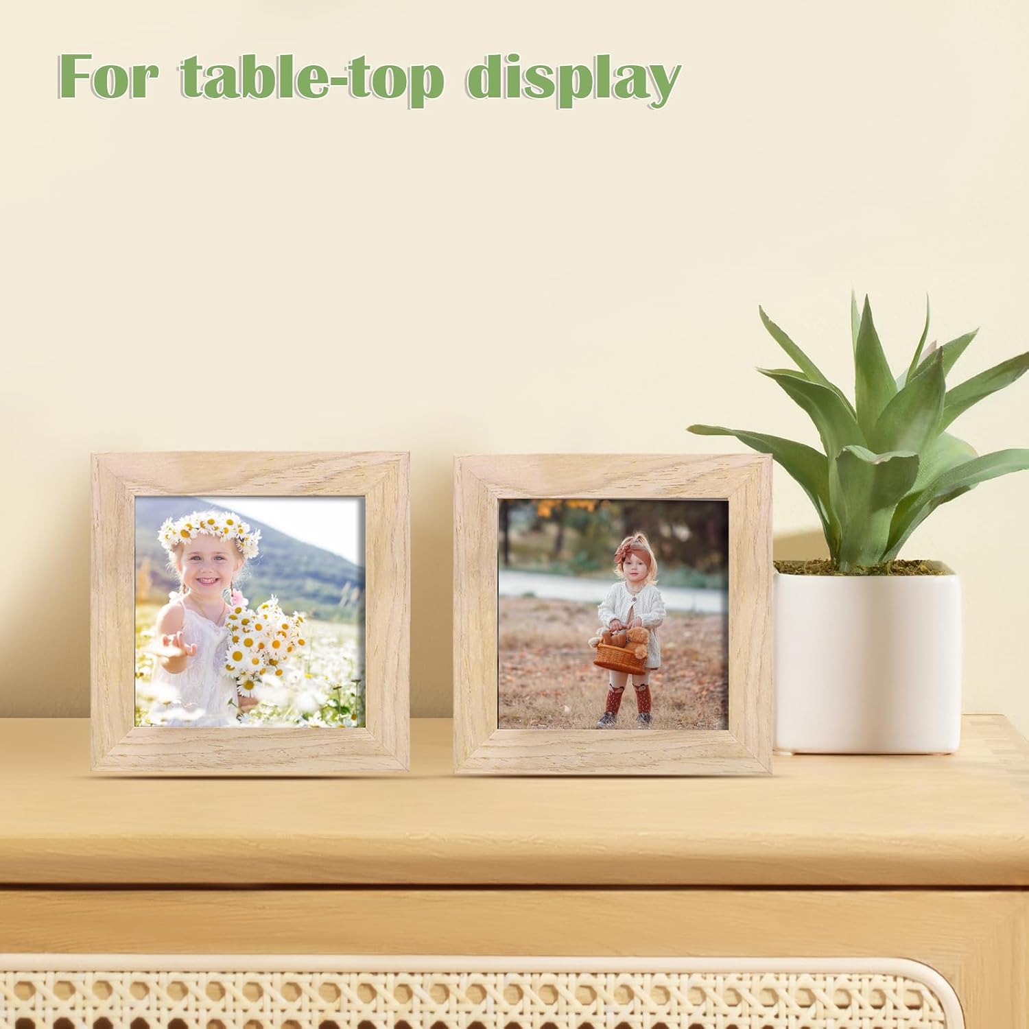 - QUICK INSTALLATION: Easy-open density board on the back let you load and change your picture quickly and keep it in place. No matter where these 4x4 natural wood frames are placed will give people a bright look.