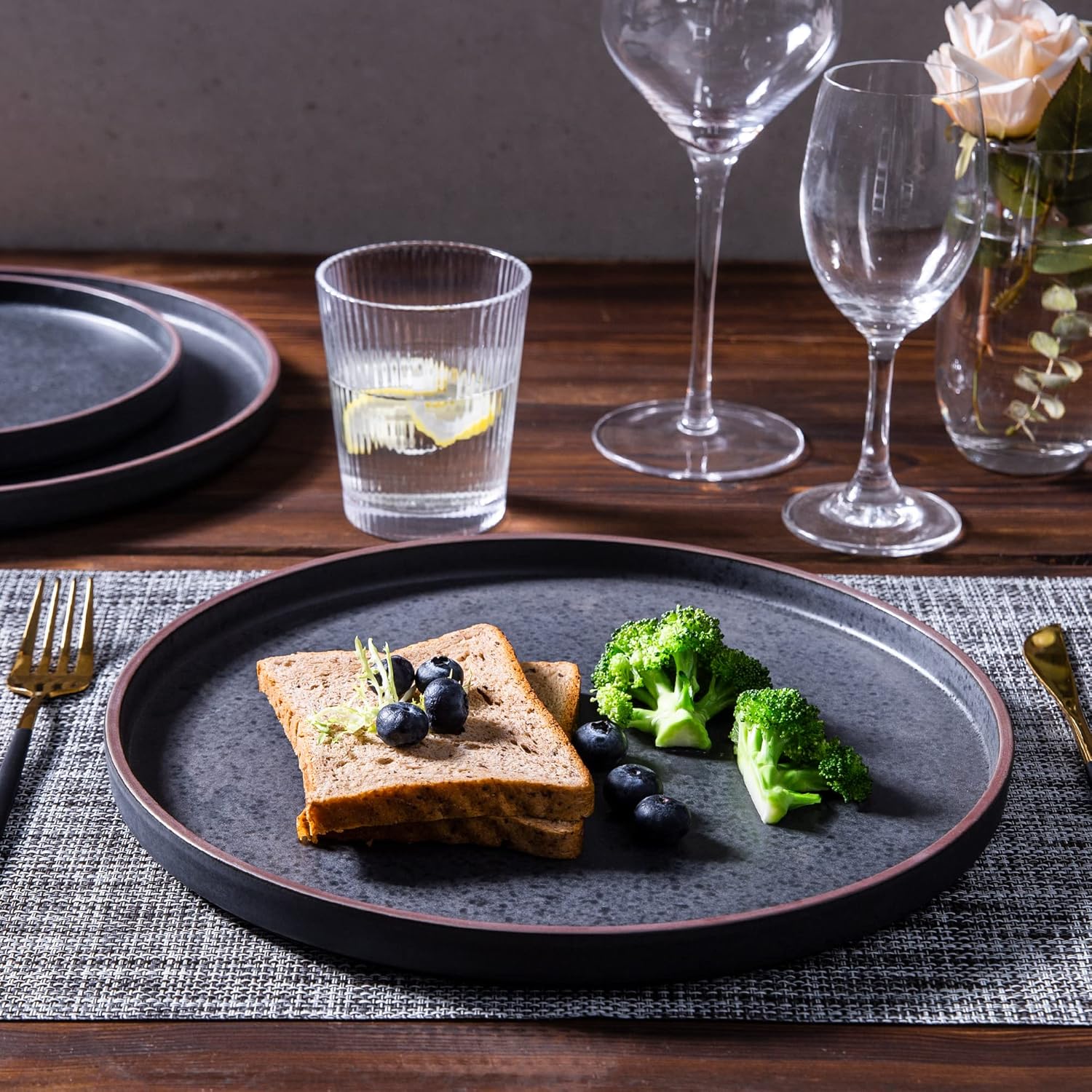 - 【CLASSY & FUNCTIONAL DESIGN】 it is creates a modern rustic aesthetic and minimalist table setting.it is add a elegance to your dining.They are very big, so you have plenty of room for all the food you want to put on it.Due to the design with the high rims for more messy eaters with liquidy foods. Their bottoms are flat to allow food to be easily cut in the bottom of the bowl with the dinner knife,this is great for making sure that nothing is spilled off the edge.