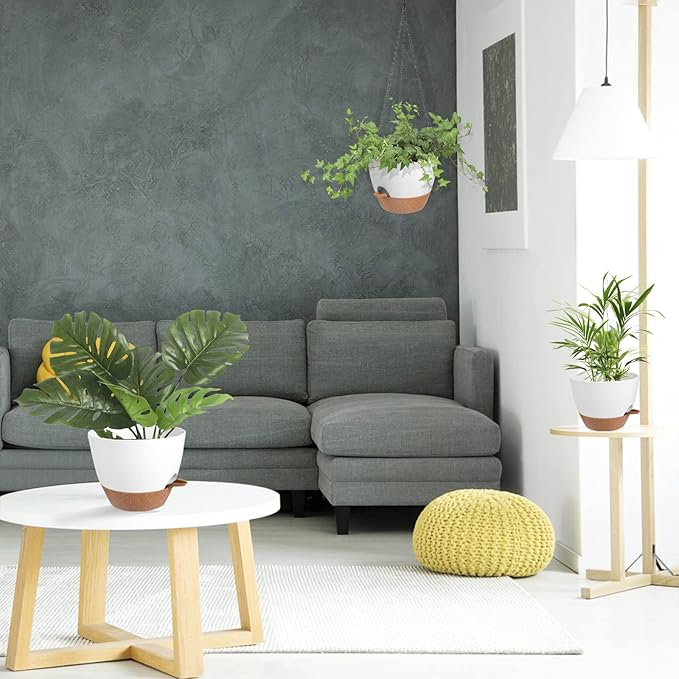 - Removable Trays - Hanging pots for plants indoor tray can be removed as a reservoir for self-watering, where excess water from the self-watering plant pots is drained into the tray, which stores a certain amount of water for the plants (7-14 days). You don't have to worry about your plants running out of water when you're away on a business trip or traveling.