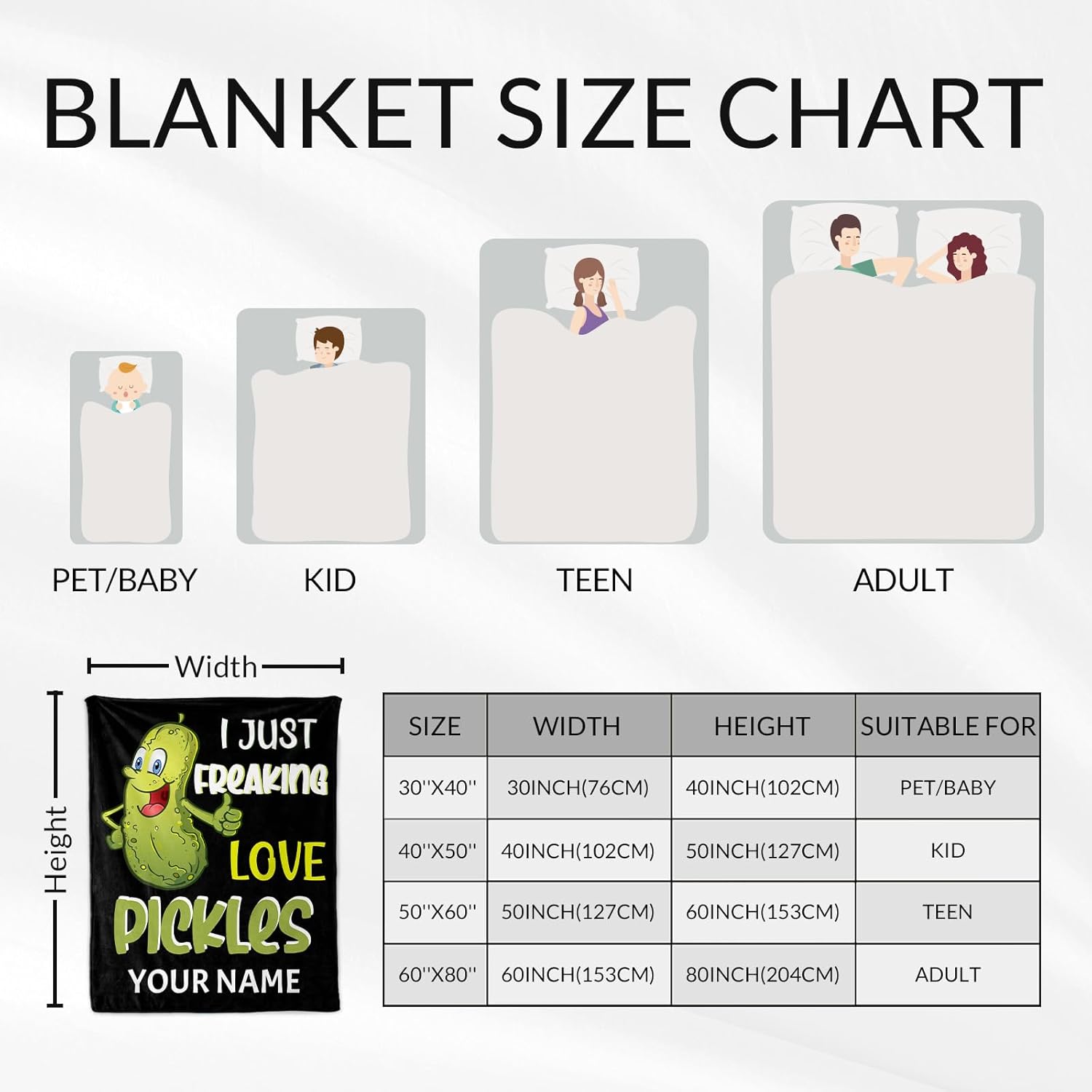 - Personalized Blanket: Click "Customize Now" to add your own personal touch to this pickle blanket with custom text. Our blankets also feature delightful cartoon designs for boys, girls and adults that are both practical and charming