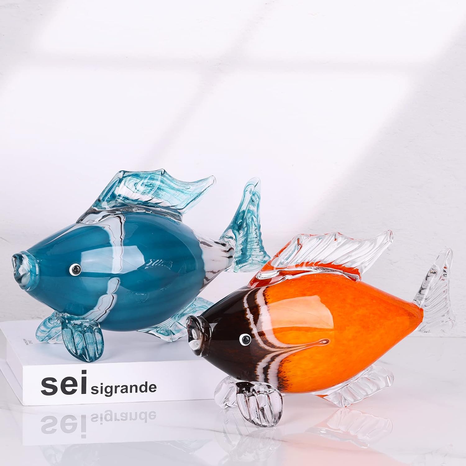 - 【Collectible & Gift-Worthy】 As a blown glass gift, this collectible fish statue makes an excellent present for weddings, birthdays, anniversaries, Valentine's Day, Thanksgiving, and Christmas. It is a perfect choice for tropical fish lovers, collectible figurines enthusiasts, and those who appreciate beach sculptures and sea life decor.