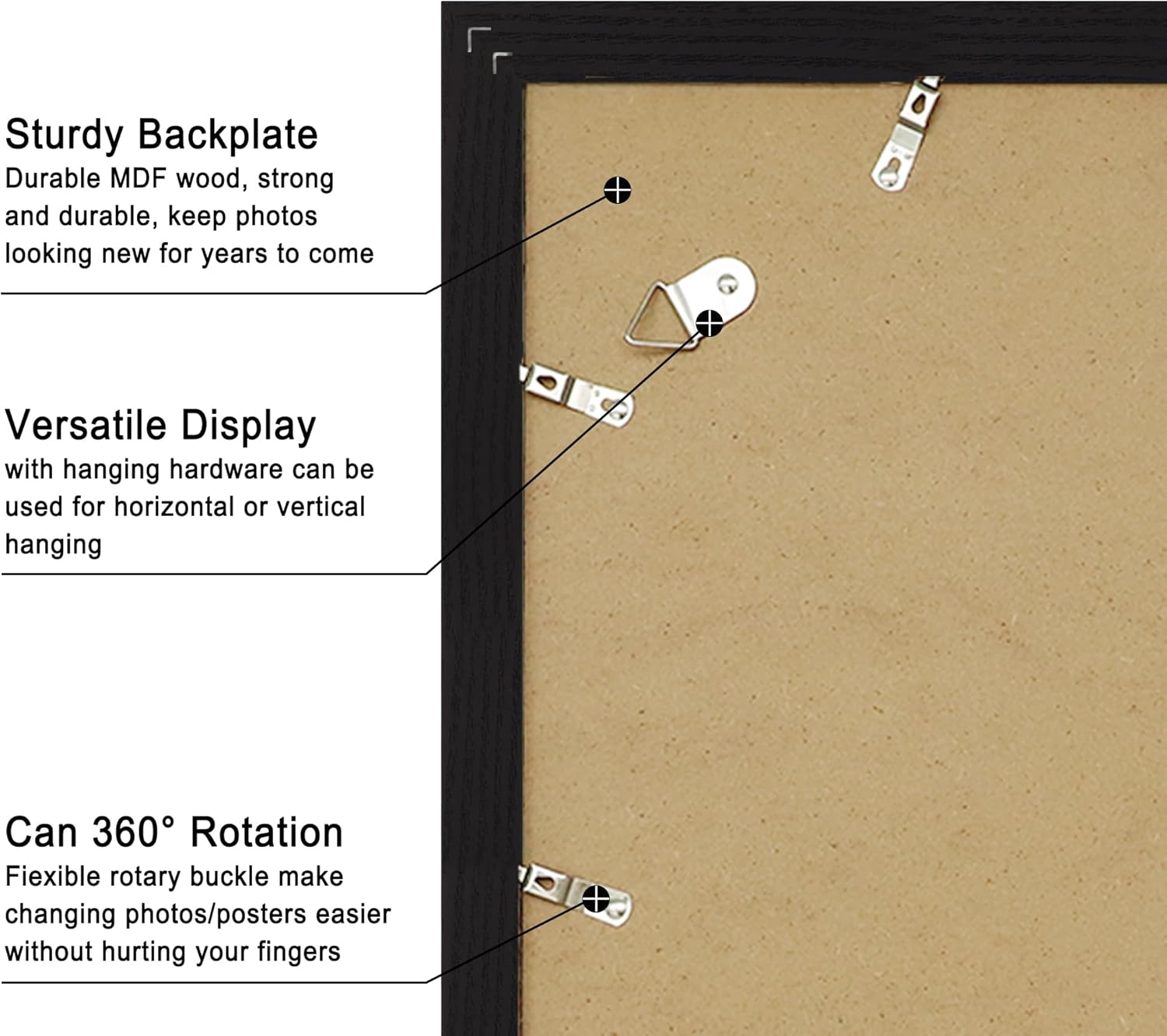 - Material: These picture frame set made of MDF are very durable and the Plexiglas with high clarity, protecting your photos from dust, moisture and scratches. Exquisitely hardware accessories on the backboard, rust-resistant and quality.