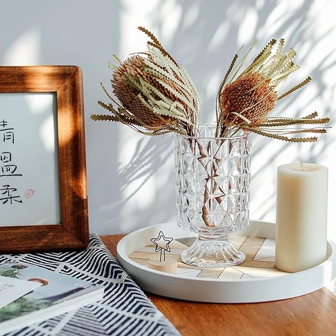 - 【Occasion】- This pedestal glass flower vase is an ideal décor and flower container for home/wedding/party/office/housewarming. Can be used as a decorative glass vase in fireplace area/hallway/dining table/windowsill/shelf/bedroom/kitchen. Create a space aesthetic and pleasant living environment.