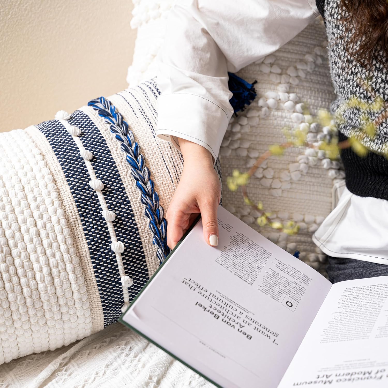 BlissBlush Navy Dark Blue Boho Decorative Lumbar Pillow Cover 14x36, Long Body Pillow for Bed, Accent Lumbar Throw Pillow for Couch, Modern Farmhouse Textured Pillowcase