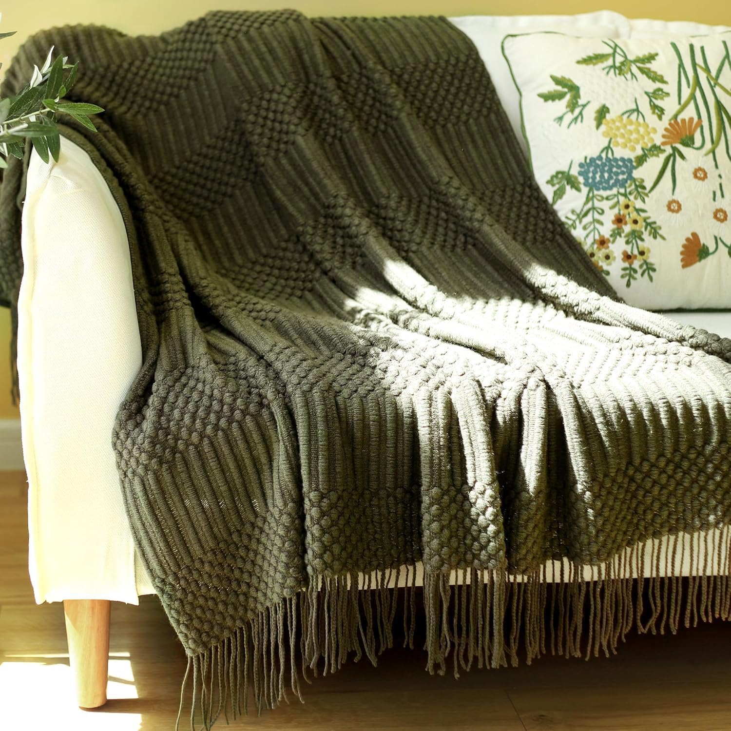 Blagic Knitted Throw Blanket for Couch, Bed and Sofa. Super Soft Blanket with Tassels, Dark Green Throw Blanket, 60 x 80 Inches Lightweight & Cosy Home Decor
