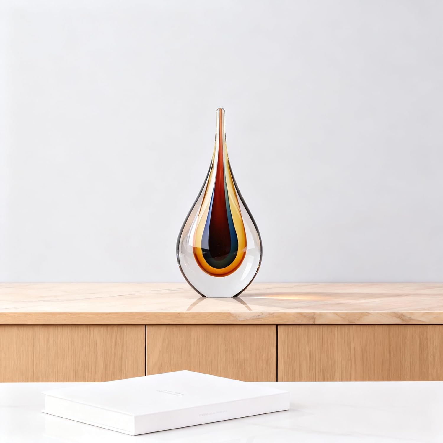 DOVDOV Blown Glass Sculpture, Collectible Stained Glass Art Statue, Unique Teardrop Ornament, Suitable for Office, Bookshelf, Dressing Table, Living Room Coffee Table, or Mantelpiece Display.