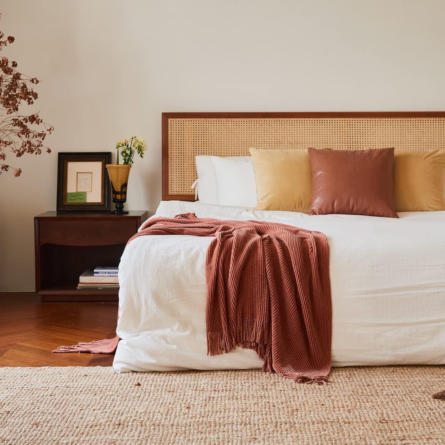 - 【FANTASTICAL DESGIN】LIFEIN throw blanket for couch nicely neutral solid knit design and well-arranged rustic farmhouse style fringes, this knitted throw blanket is in kinda terracotta/burnt orange rust, which is a pretty easy way to match your room to add an extra solid terracotta boho feature, don't you want have a rust throw blanket for your home decor?