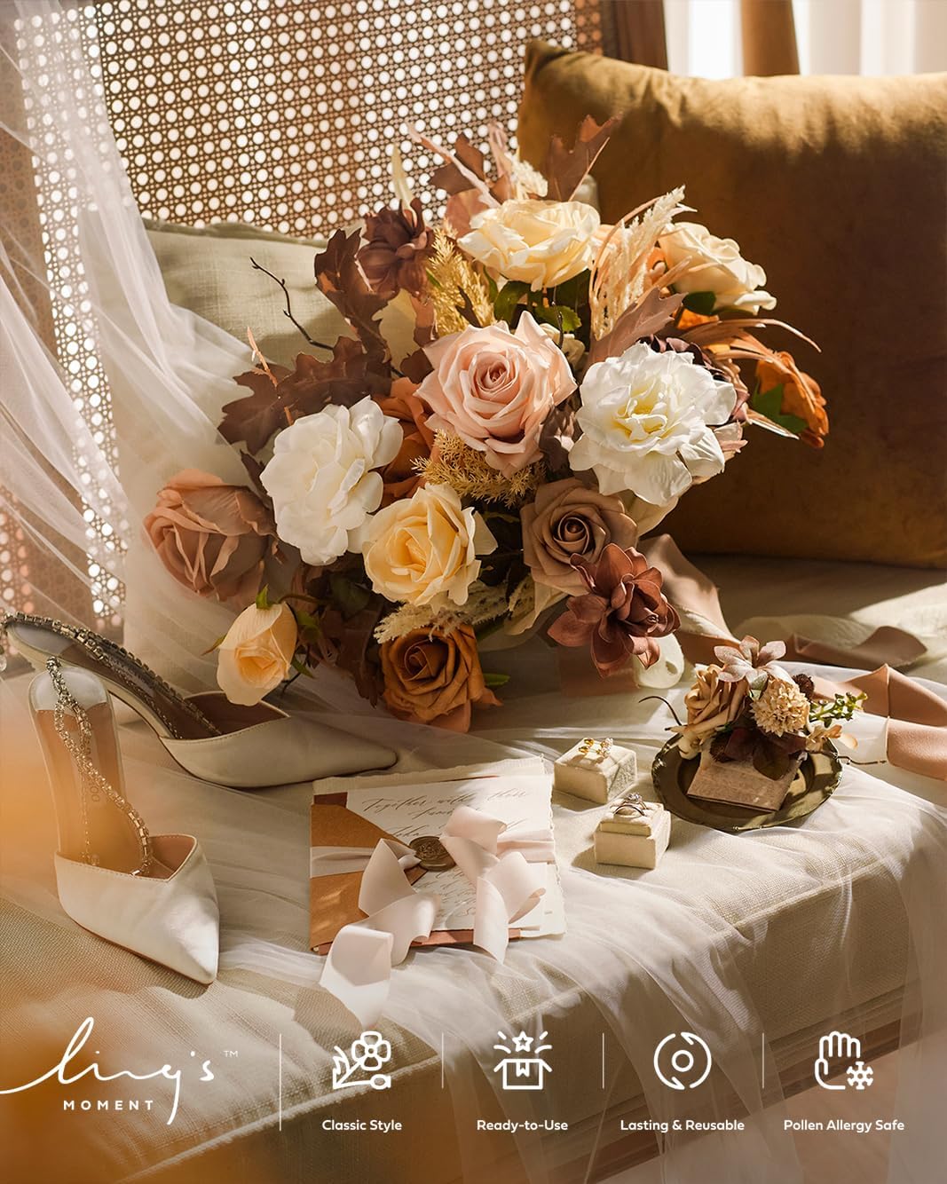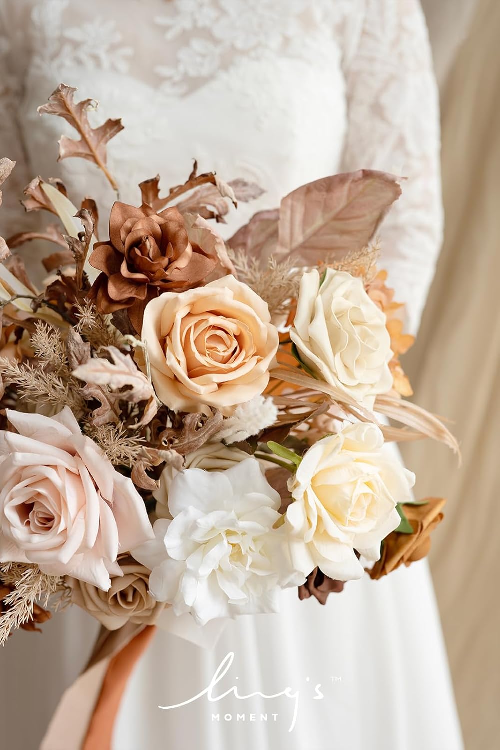 Ling's Moment 13 Inch Artificial Wedding Bouquets for Bride Bridal Bouquet Bridesmaid Bouquet Tossing Bouquet for Wedding Ceremony Anniversary Bridal Shower