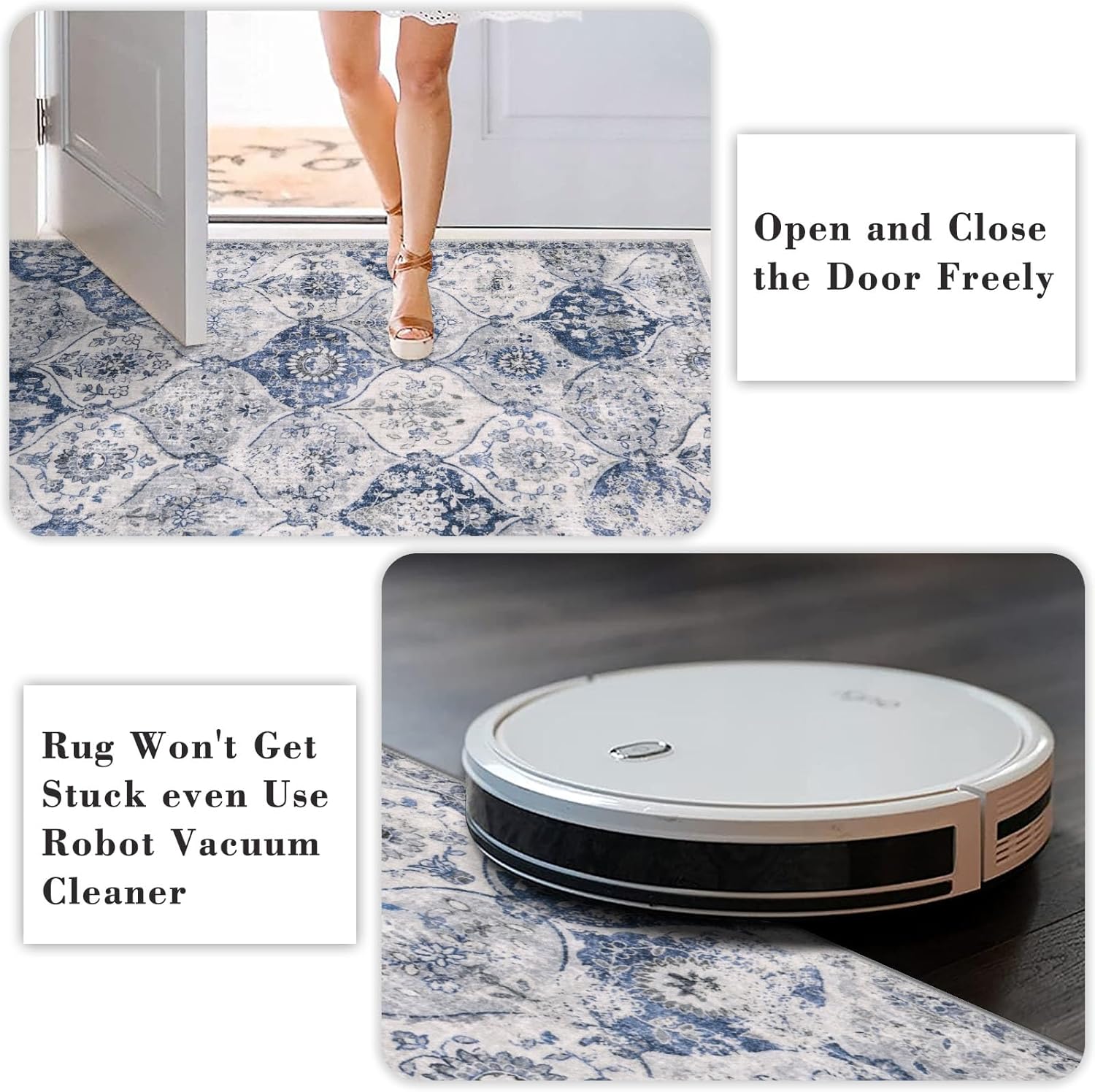- Ultra-thin and Safe: This ultra-thin Moroccan rug can be easily placed in entryways and under furniture, and won't get stuck on doors and become a tripping hazard. The sweeping robot can move to clean the carpet