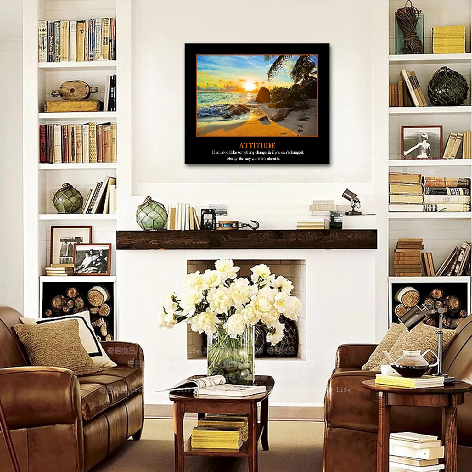 KREATIVE ARTS Motivational Self Positive Office Quotes Inspirational Attitude Poster Beach Sunset Seascape Picture Canvas Prints Wall Art for Walls Decoration 20x24inch (Attitude)
