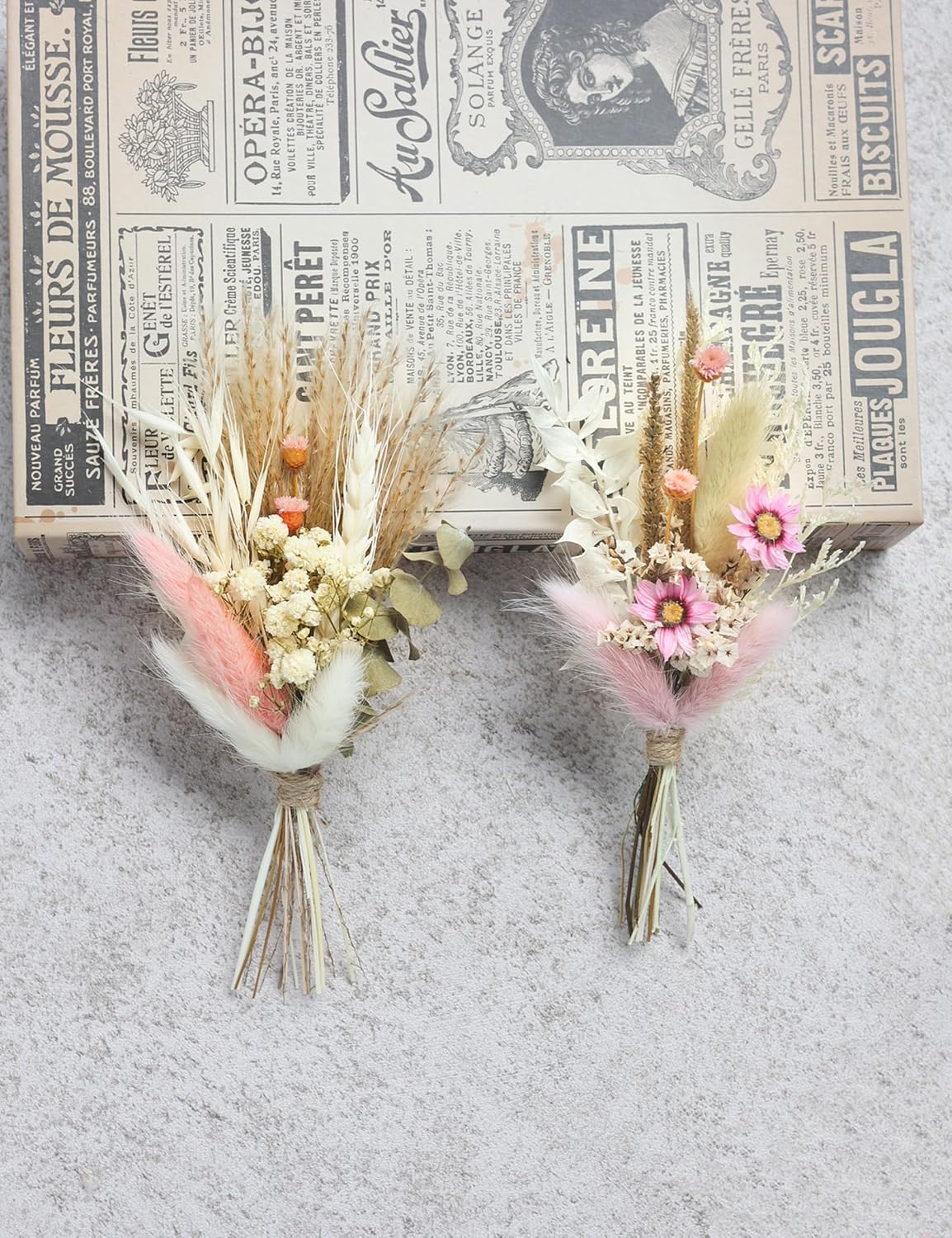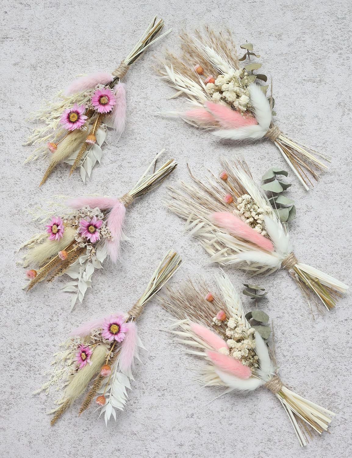 - Mini natural dried flower bouquet is a great gift for bridesmaid flower girl, small table vase, bohemian wedding decorations, groom and groomsmen wedding boutonniere 6-piece set, all kinds of holiday matching gift boxes, home decor or add to your personalized gift.